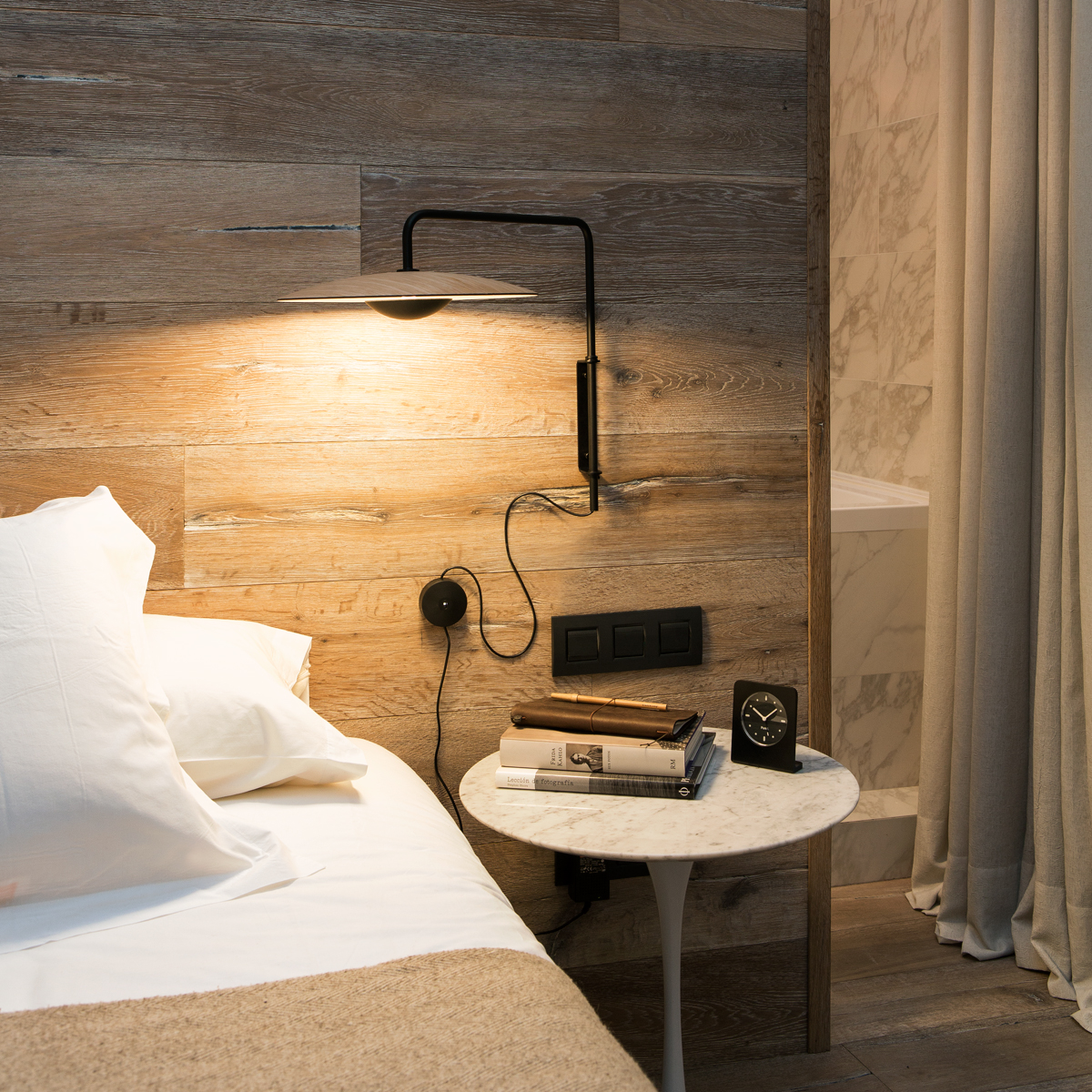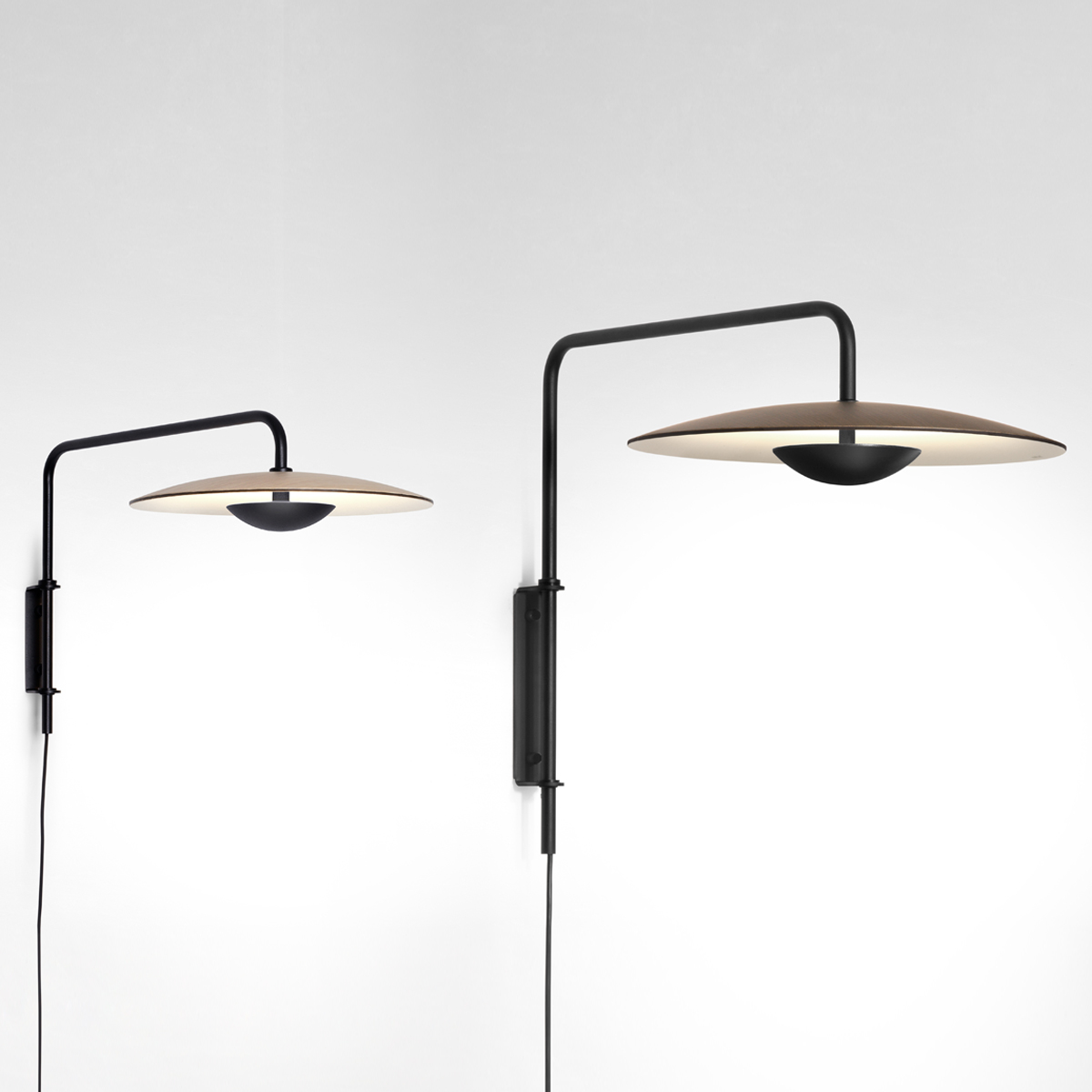 - Formschöne Wandleuchte mit Schirm aus Eiche oder Wenge