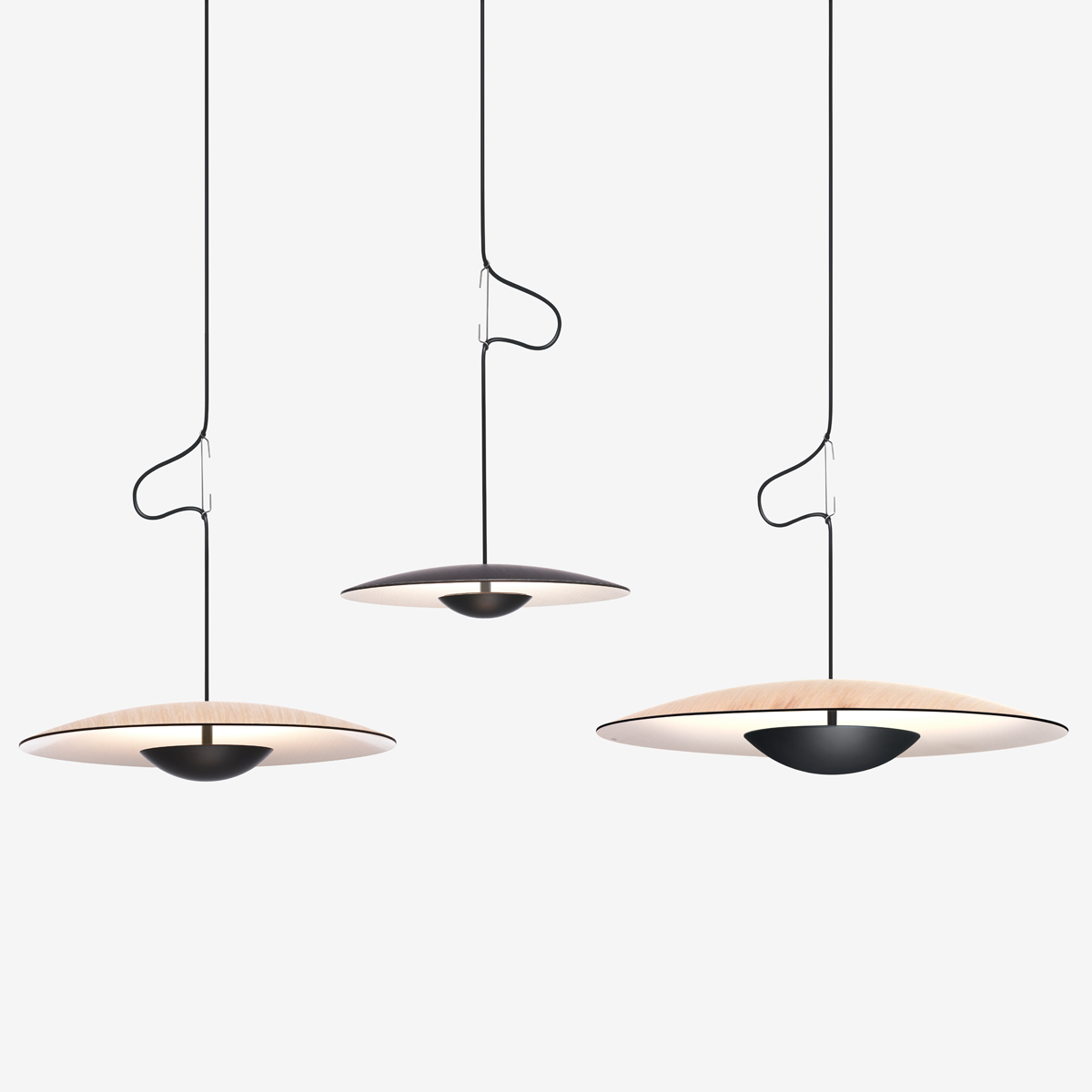 - Formschöne Pendellampe mit Schirm aus dünnem Schichtholz