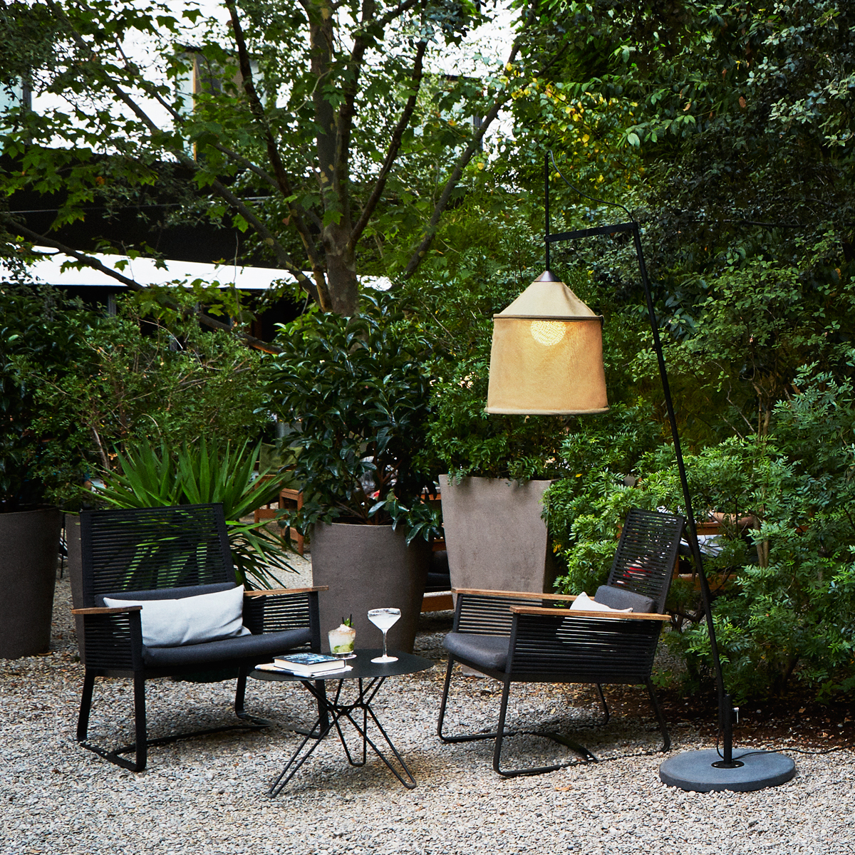 | Material/surface: | Grey lacquered stainless steel, base: cement, stem: black stainless steel, supply cable: black |