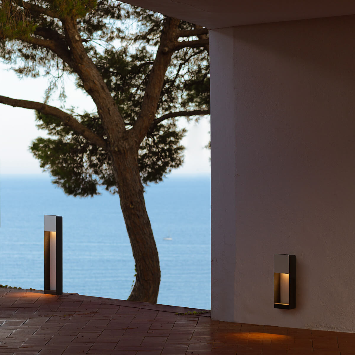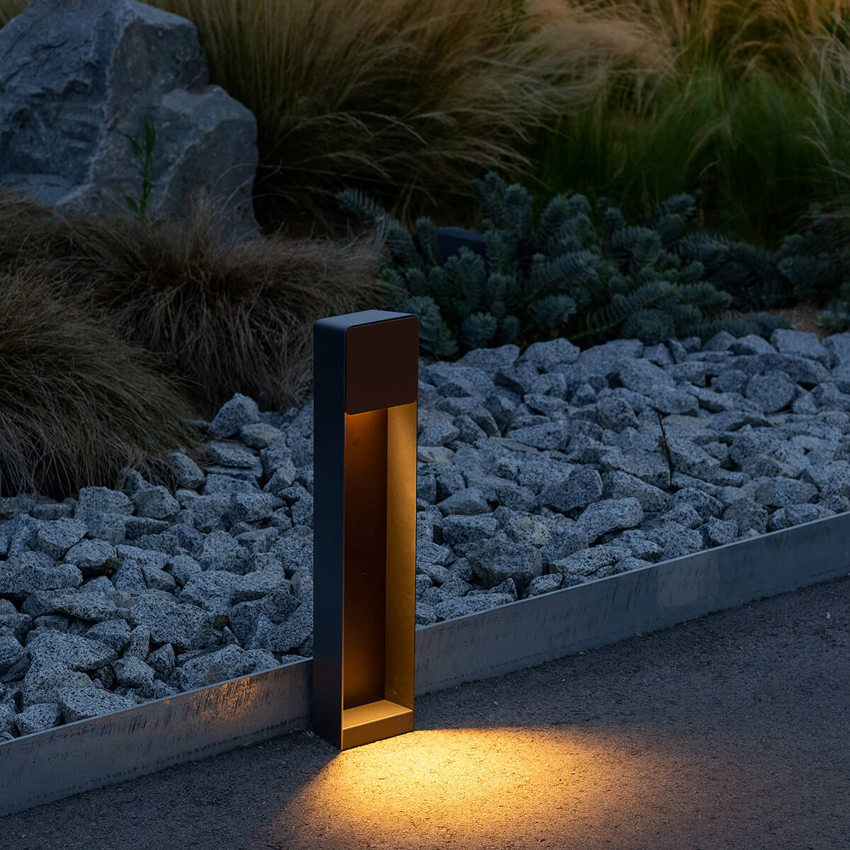 - Ästhetische Pollerleuchte mit Fronten aus Metall oder Irokoholz