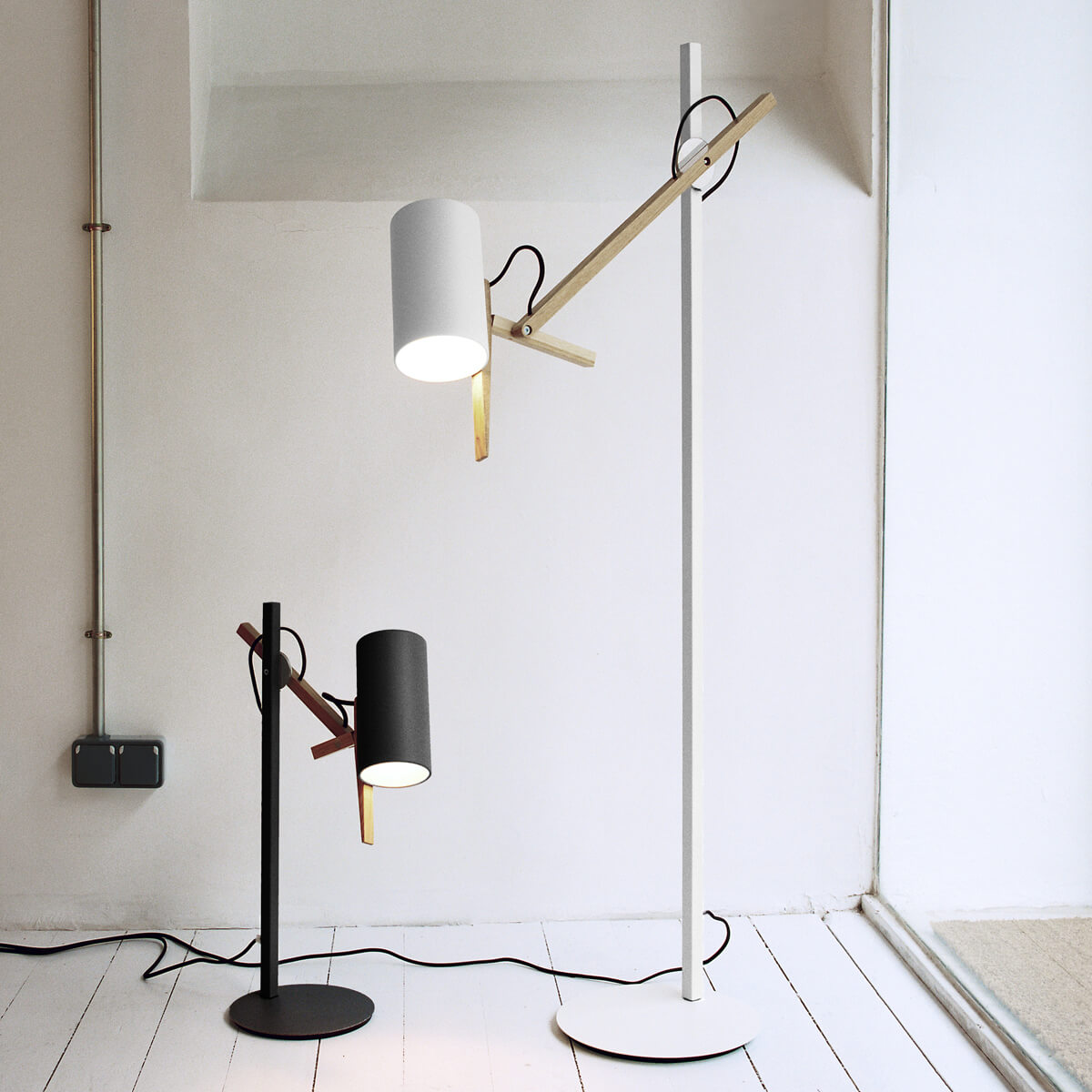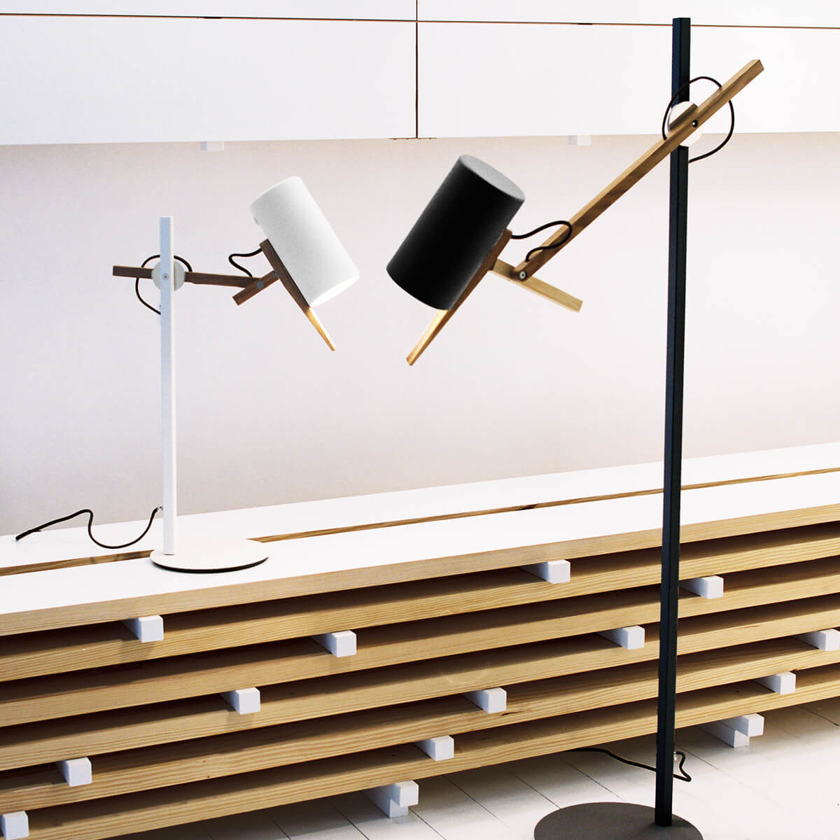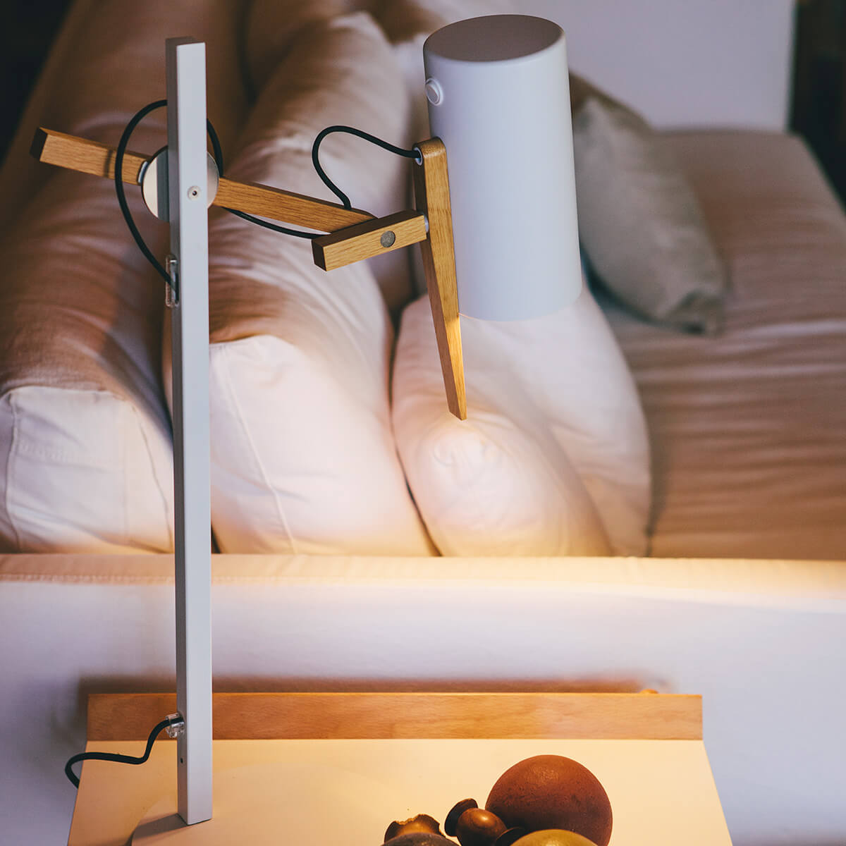 - Funktionale Tischleuchte mit beweglichem Arm aus Eichenholz