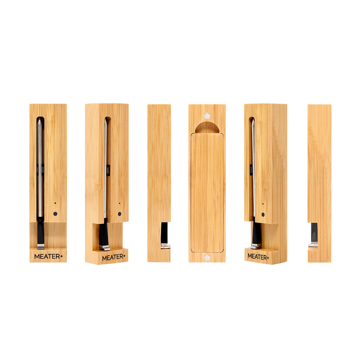 Erleben Sie die Zukunft des Kochens – mit dem smarten MEATER Plus Grillthermometer! Mit dem kabellosen Thermometer lässt sich die Zubereitung köstlicher Fleischgerichte bequem vom Smartphone oder Tablet aus verfolgen. Ein Bluetooth-Signalverstärker in der Echtholz-Ladestation erhöht die Nutzungsreichweite auf bis zu 50 Meter – für noch mehr Freiheit beim Kochen und Grillen.
