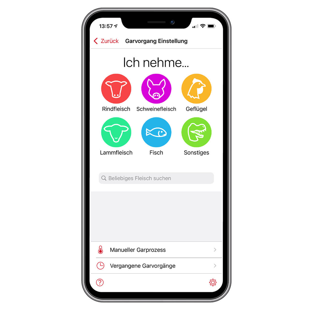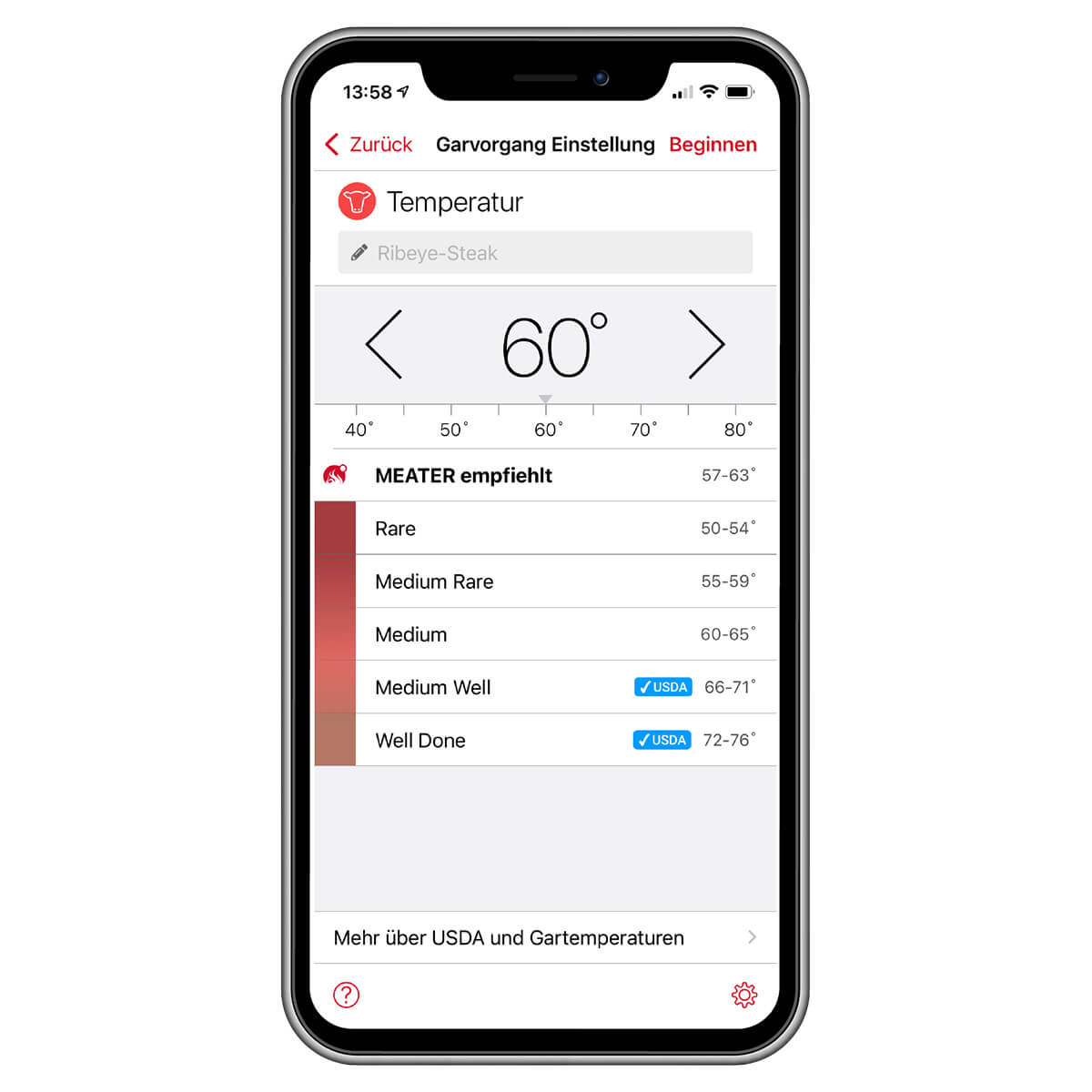 - Bedienung via kostenloser Meater App (ab Versionen iOS 10.3 und Android 5.0)