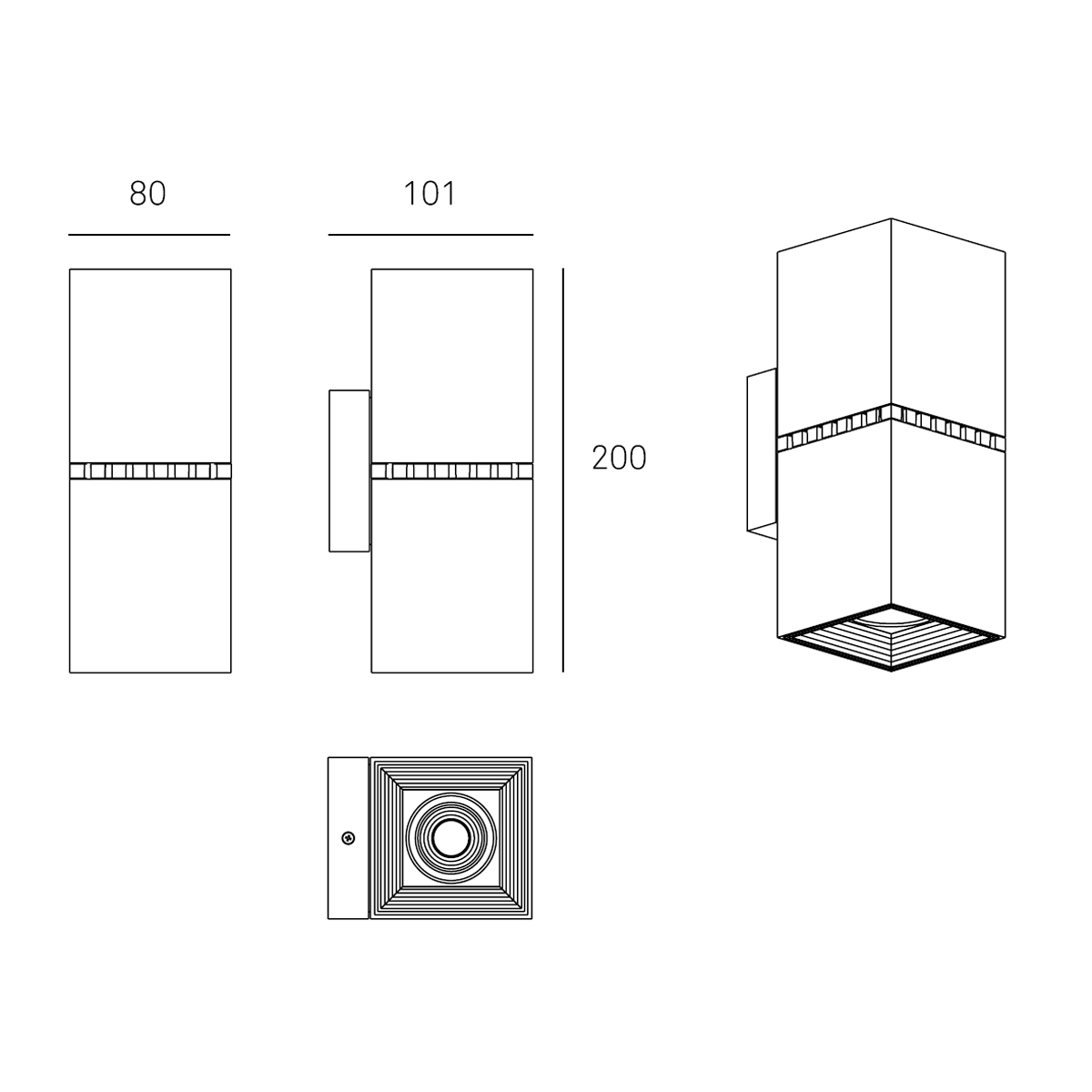 - Quaderförmige Wandleuchte aus veredeltem Aluminium