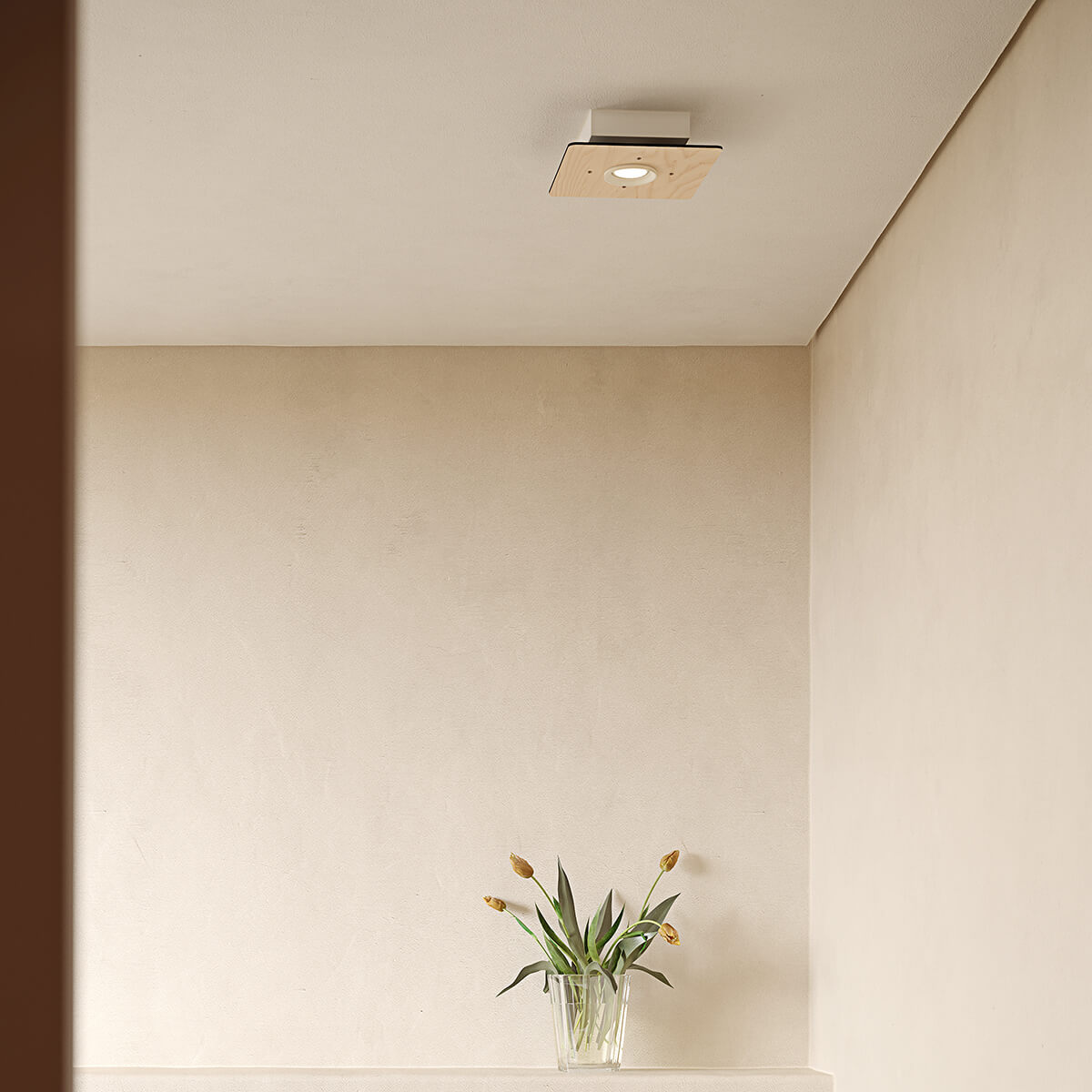 - Kleine quadratische Deckenleuchte aus Eschenholz mit einem Strahler