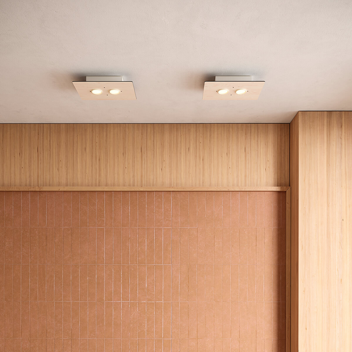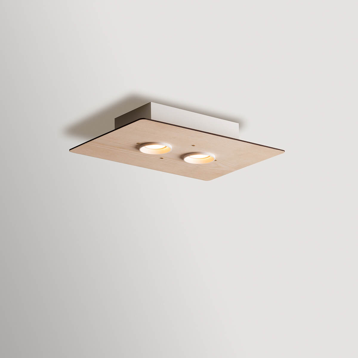 - Rechteckige Deckenleuchte aus Eschenholz mit zwei Strahlern