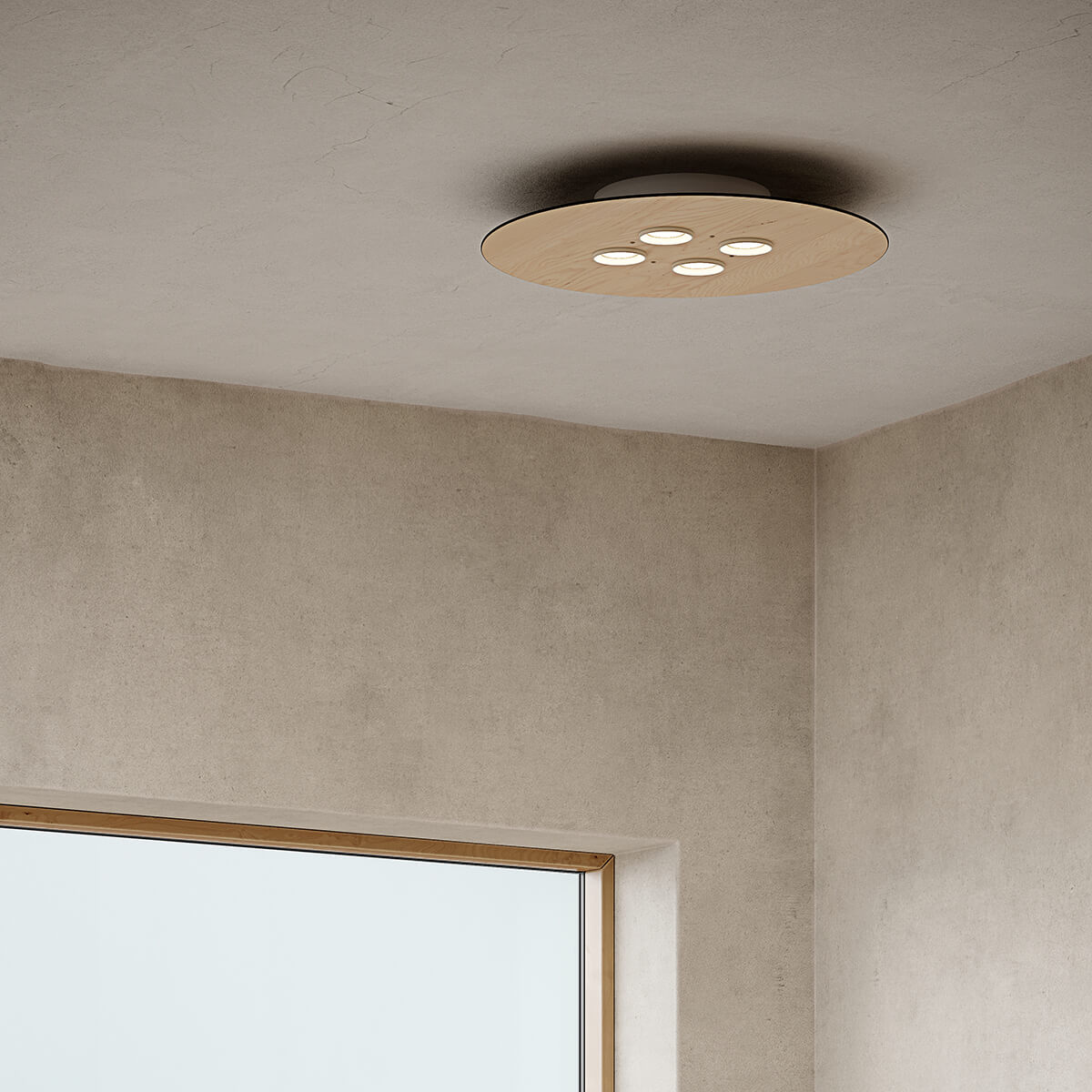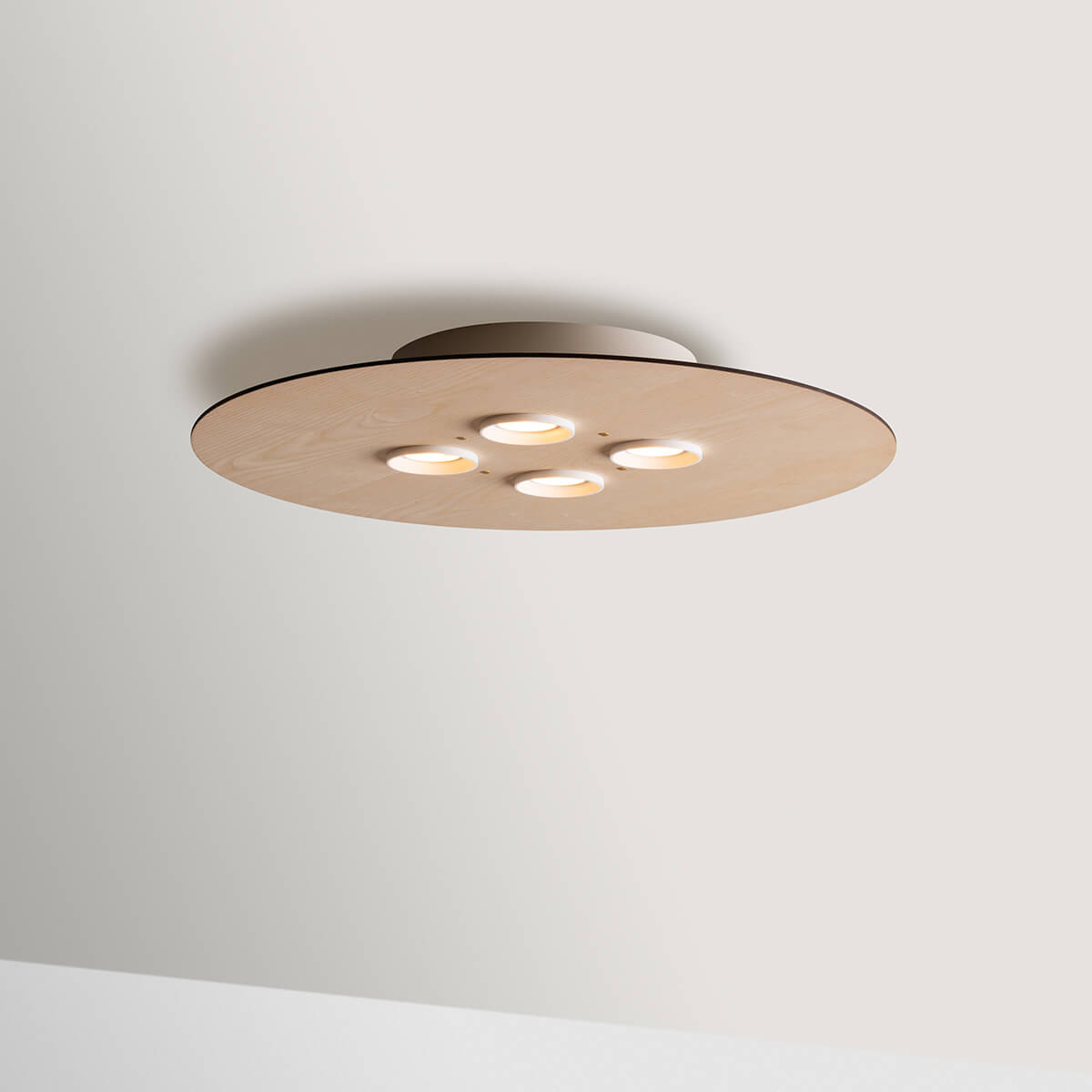 - Runde Deckenleuchte aus Eschenholz mit vier Strahlern