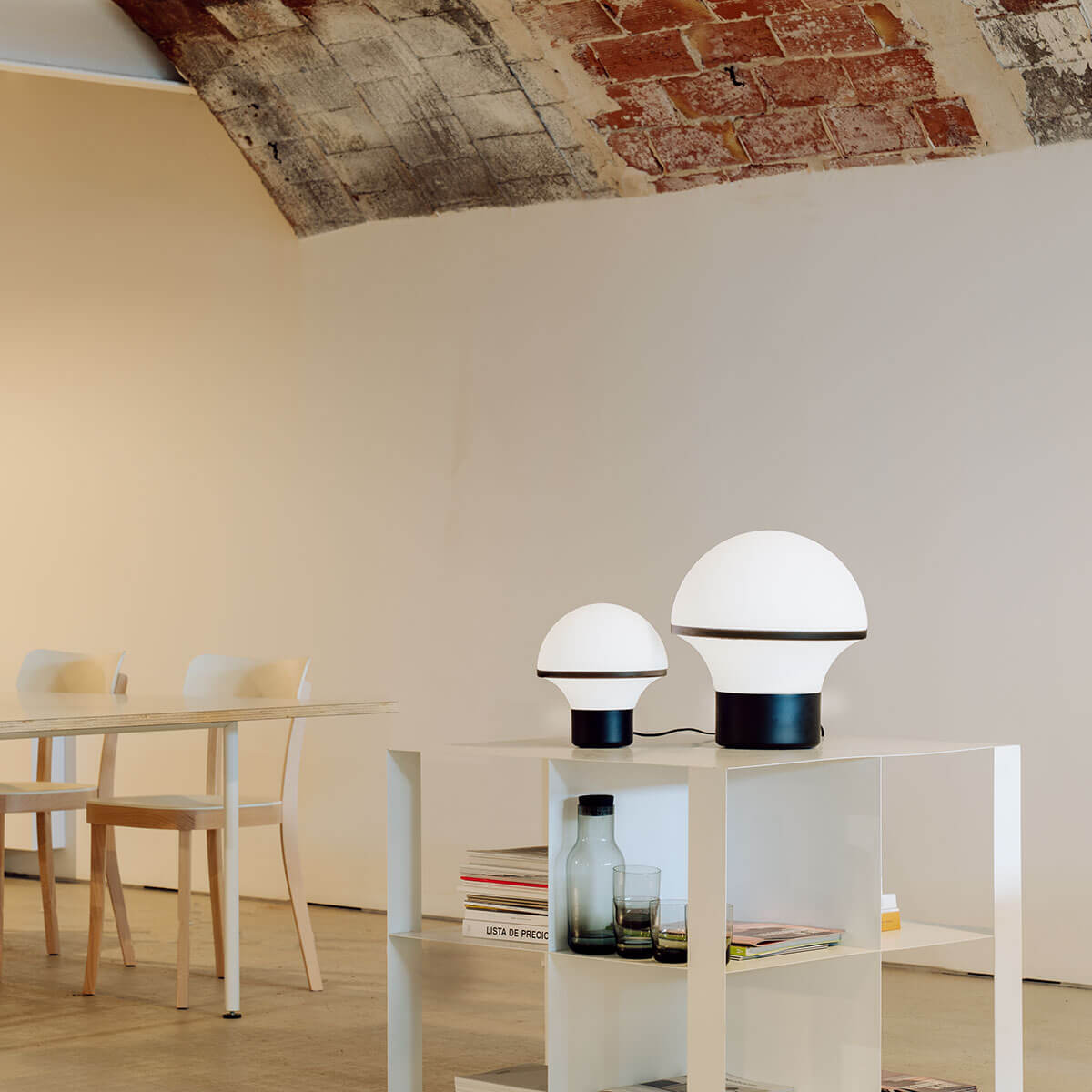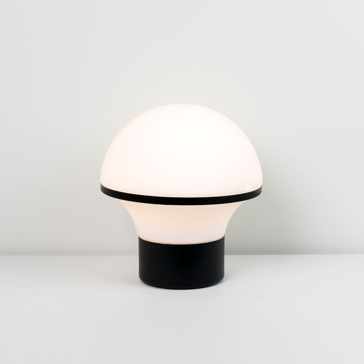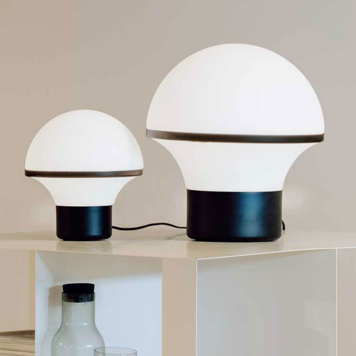 Milan Geyser Tischleuchte, Ø: 25 cm und Ø: 35,2 cm, schwarz matt / Opalglas satiniert