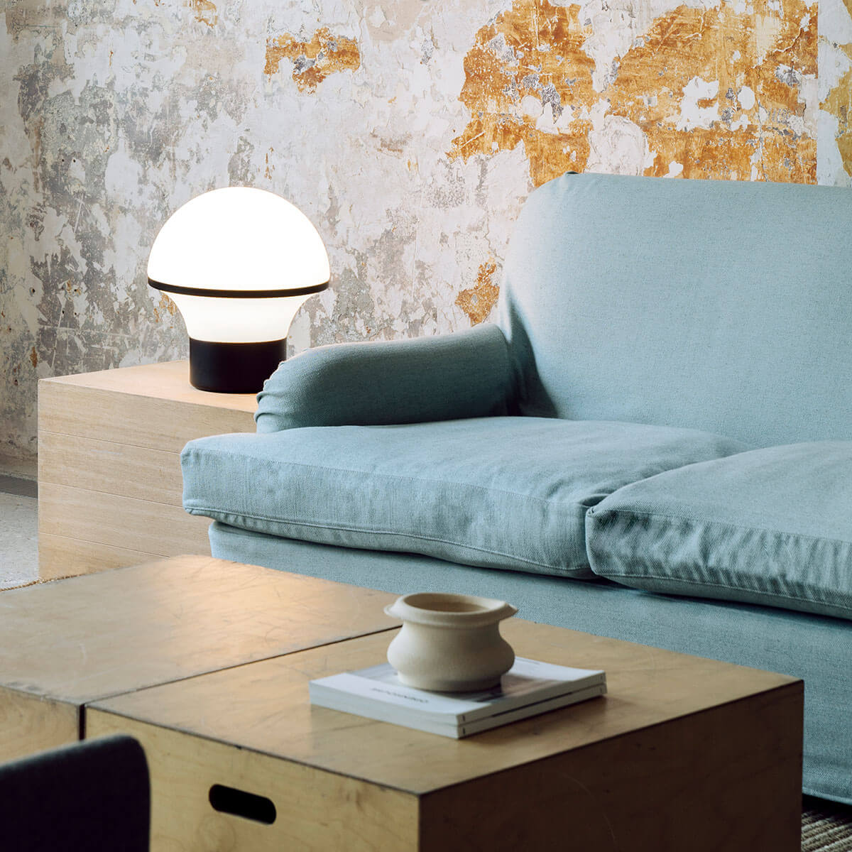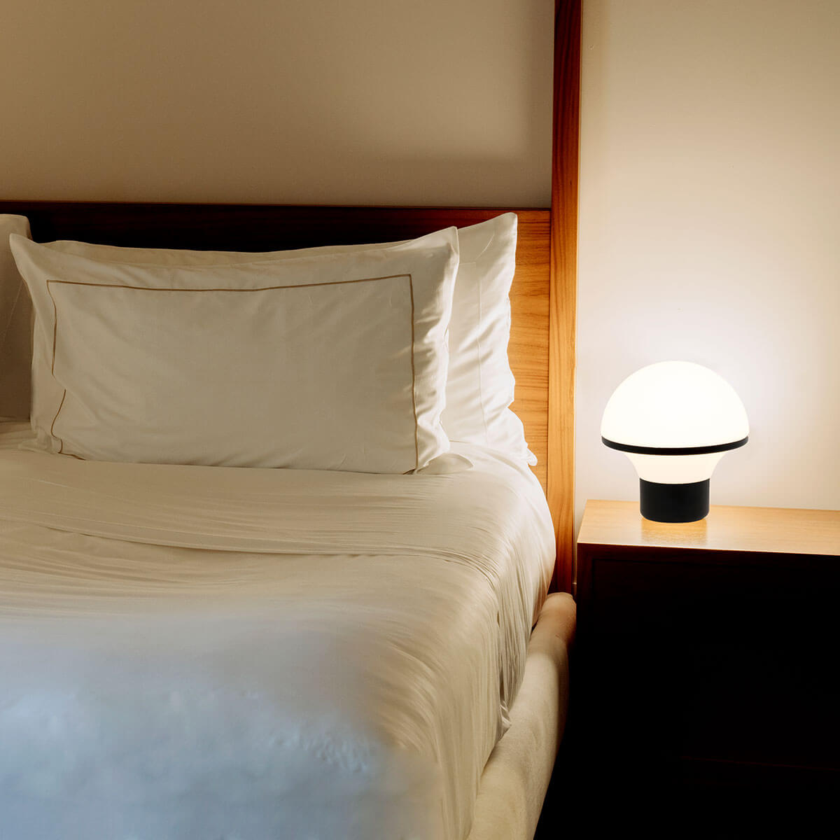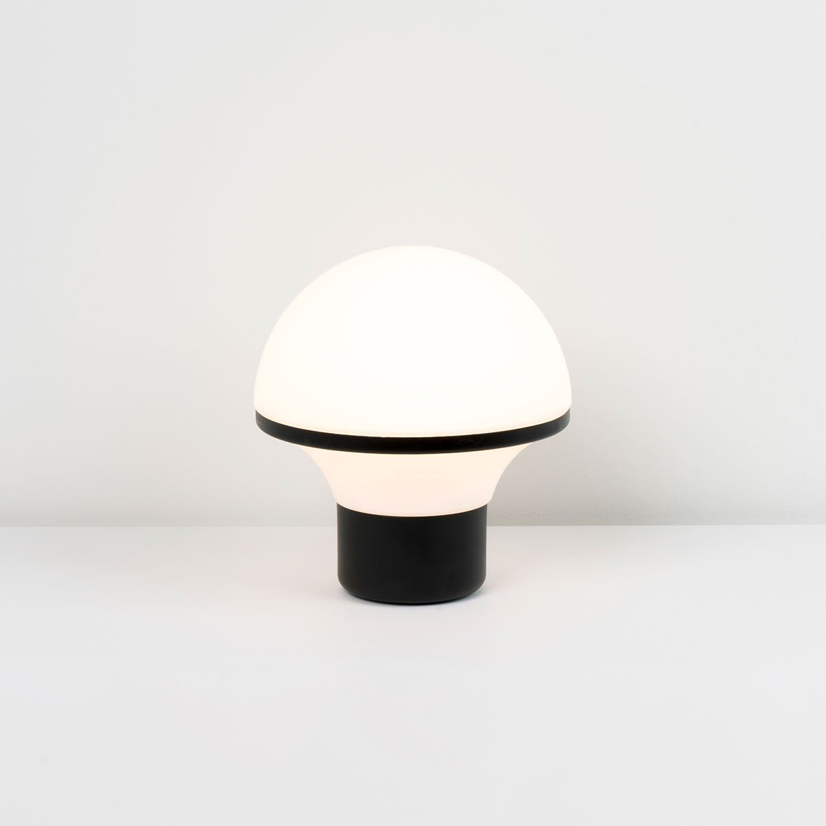 Milan Geyser Tischleuchte, Ø: 25 cm und Ø: 35,2 cm, schwarz matt / Opalglas satiniert