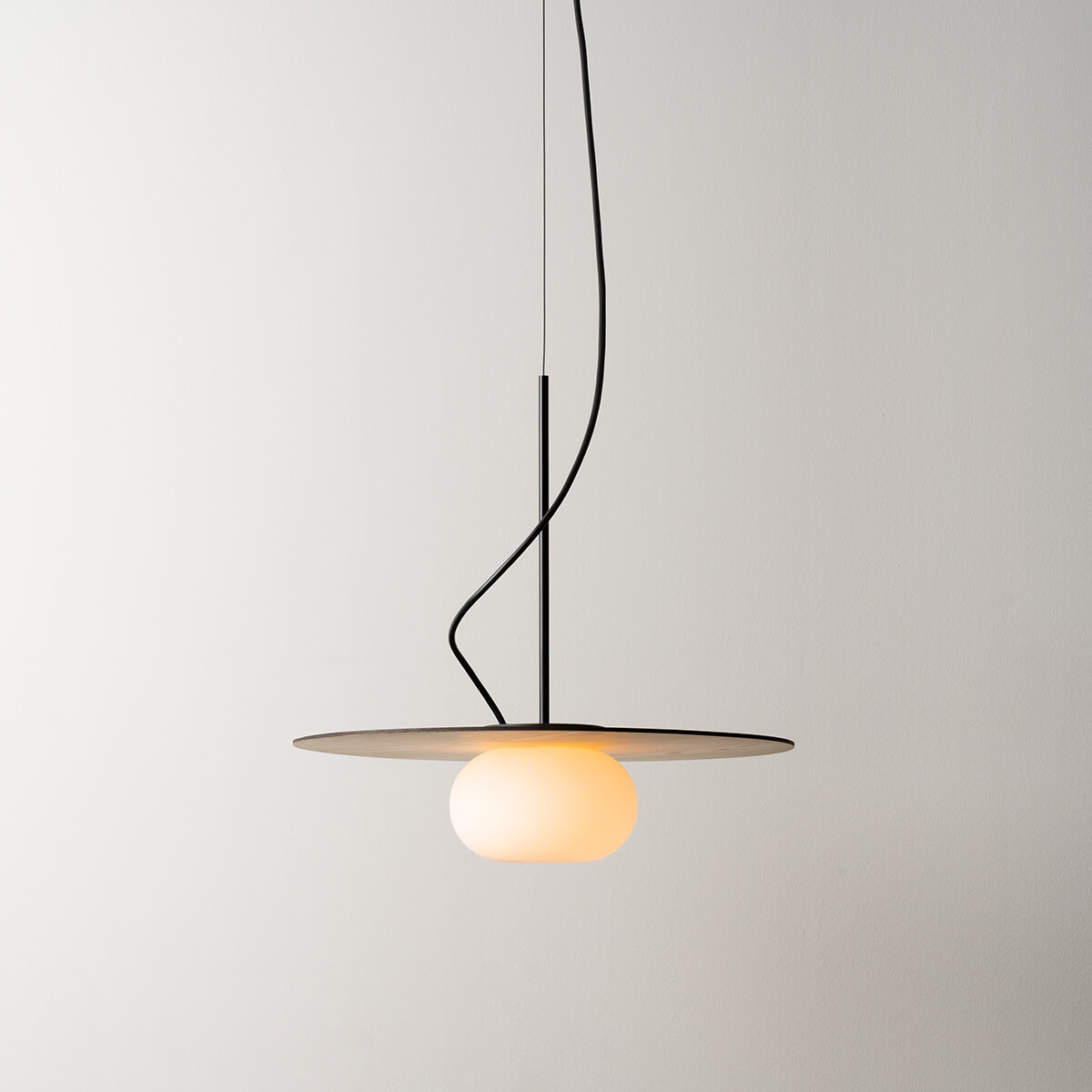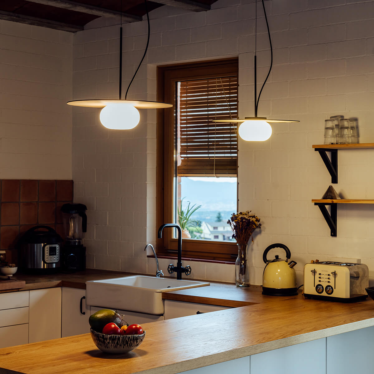 - Moderne Pendelleuchte aus lackiertem Eschenholz und Opalglasdiffusor