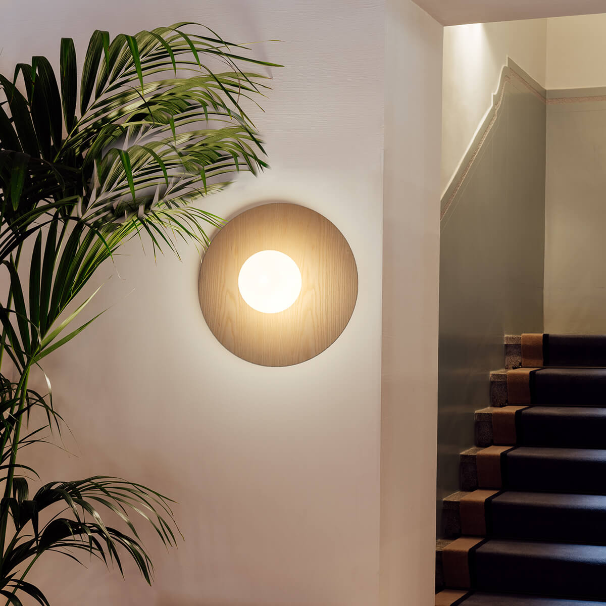 - Moderne Wand- / Deckenleuchte aus lackiertem Eschenholz und Opalglasdiffusor