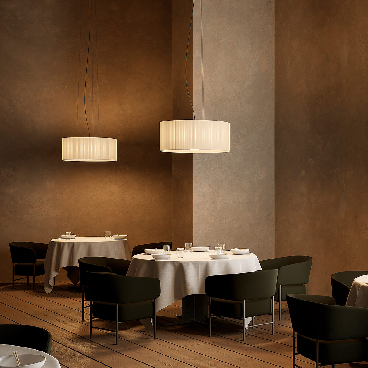 Die runde Lap Pendelleuchte von Milan mit transluzentem dekorativem Lampenschirm sorgt für eine gemütliche Beleuchtung in Wohn- und Essräumen.