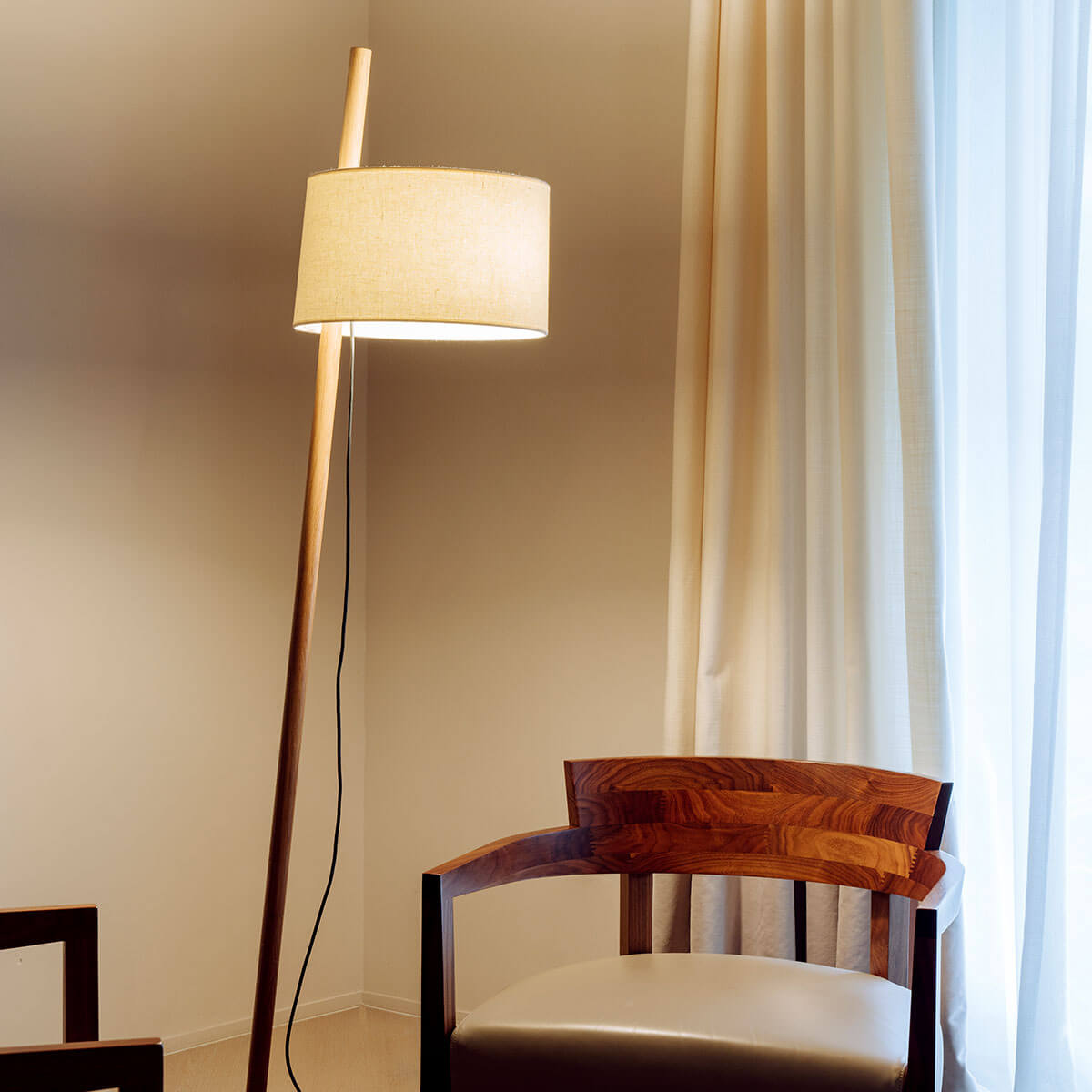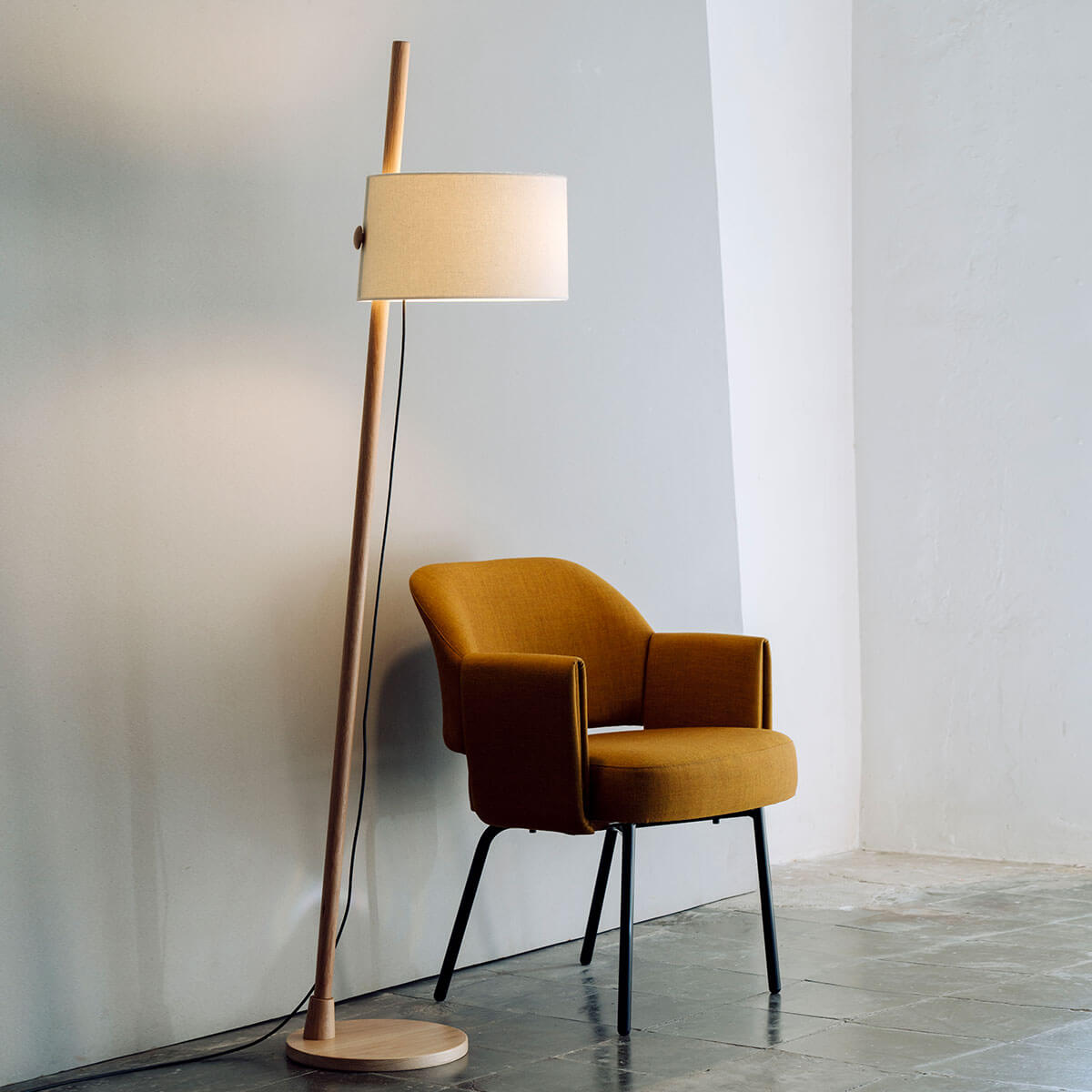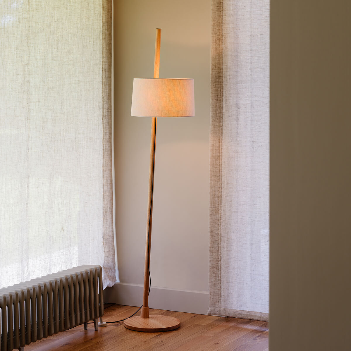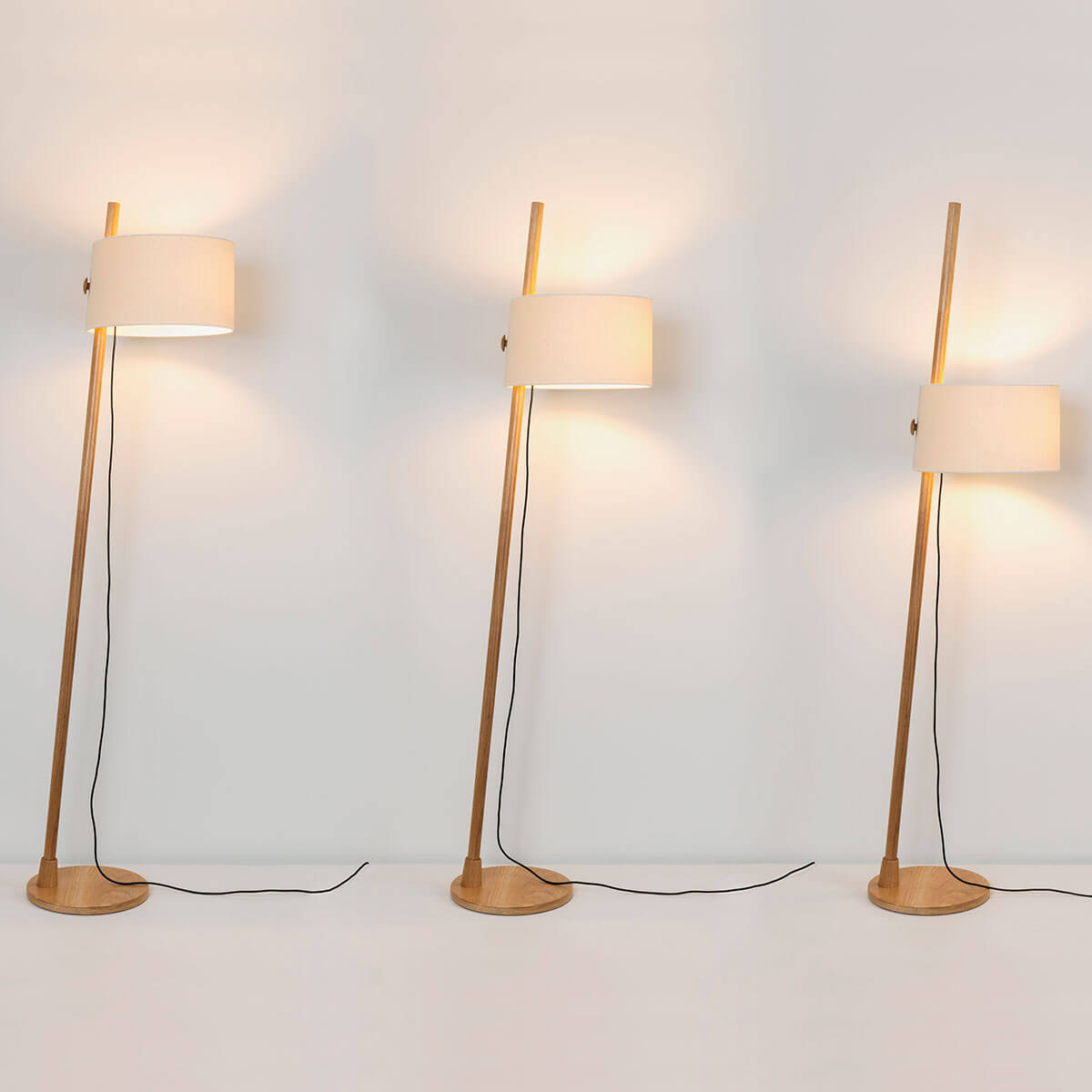 Milan Linood Stehleuchte, geneigt, Schirm: Polyester / Korpus: Eichenholz