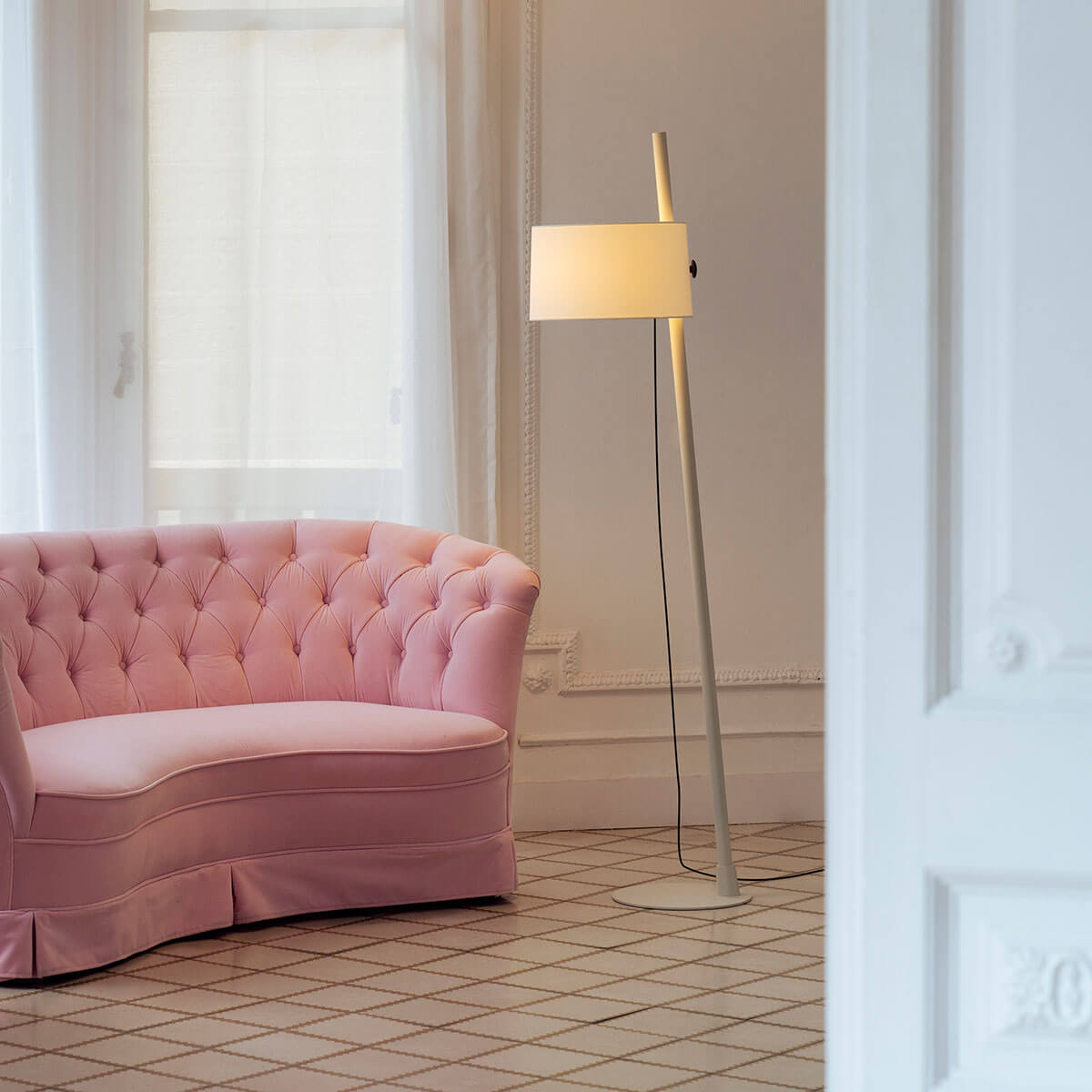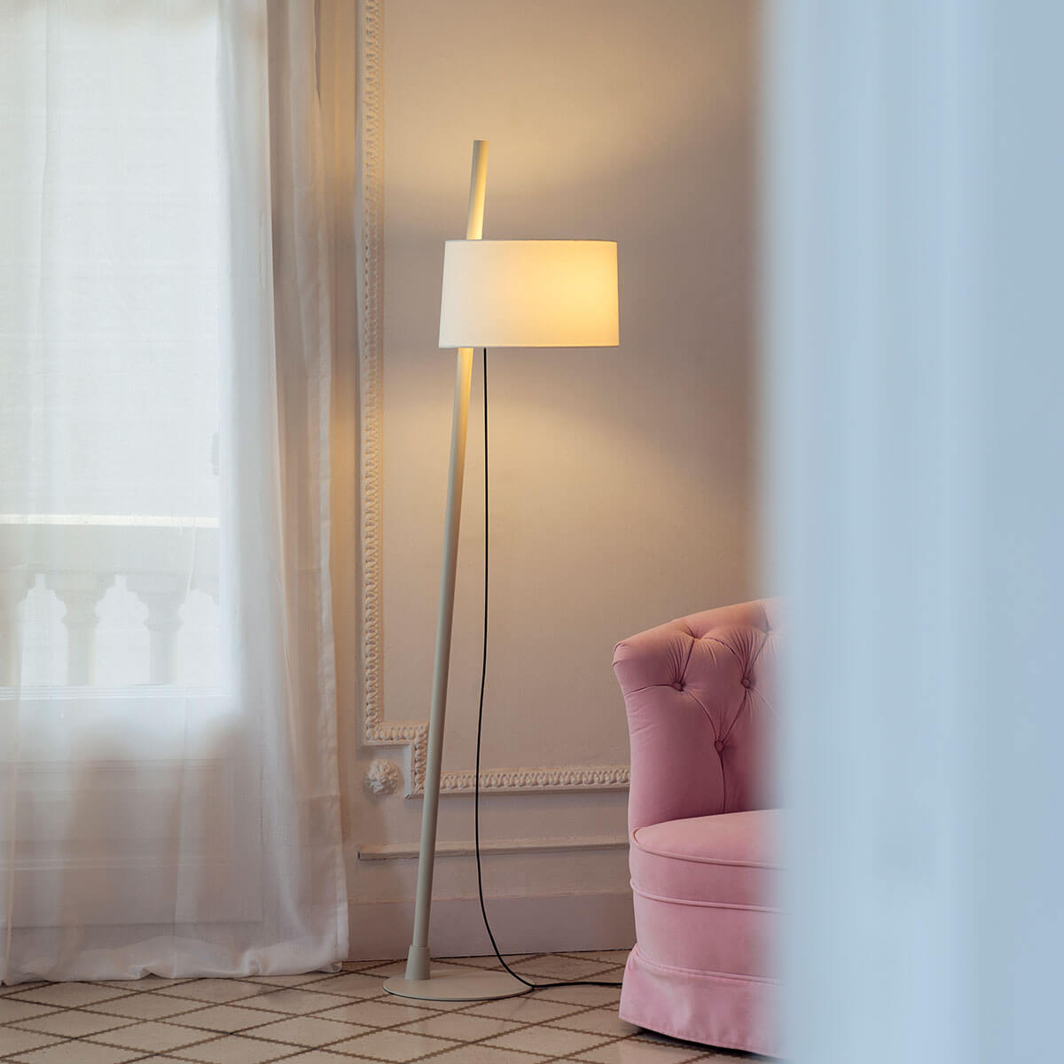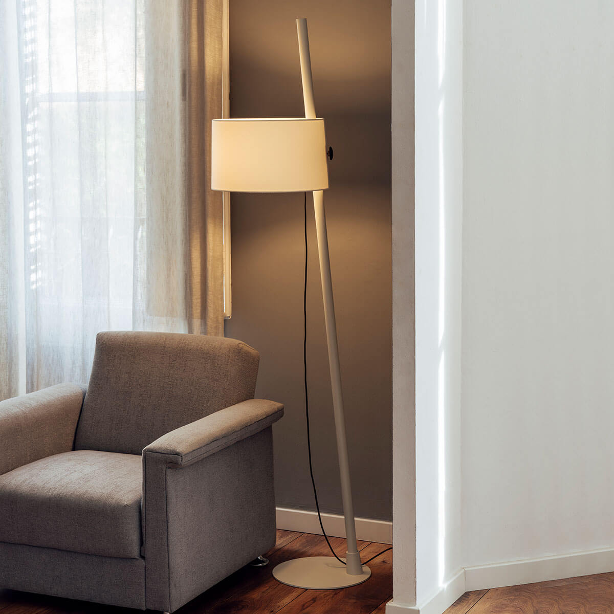 Milan Linood Stehleuchte, geneigt, Schirm: Polyester / Korpus: nerzfarben
