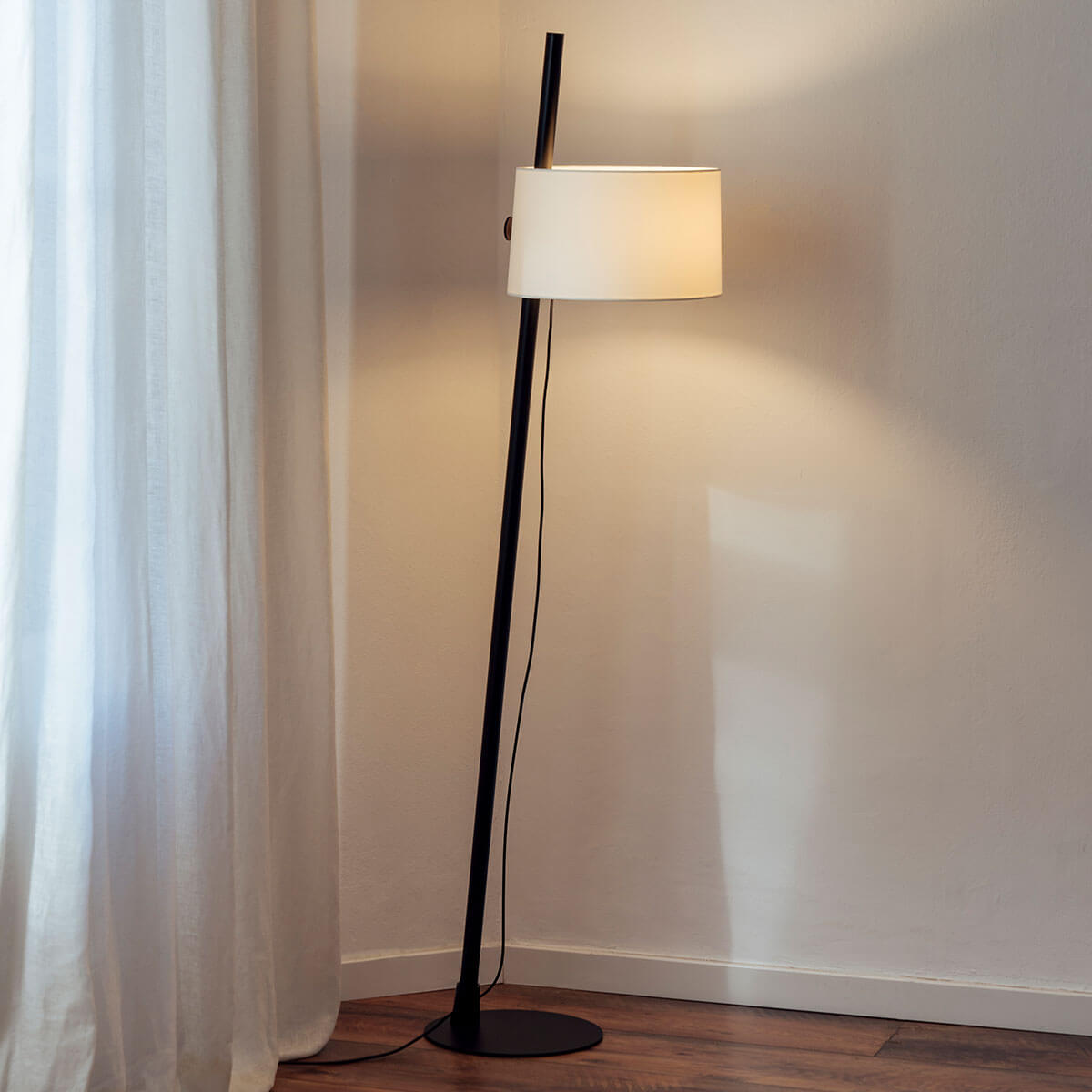 Milan Linood Stehleuchte, geneigt, Schirm: Leinen / Korpus: schwarz matt