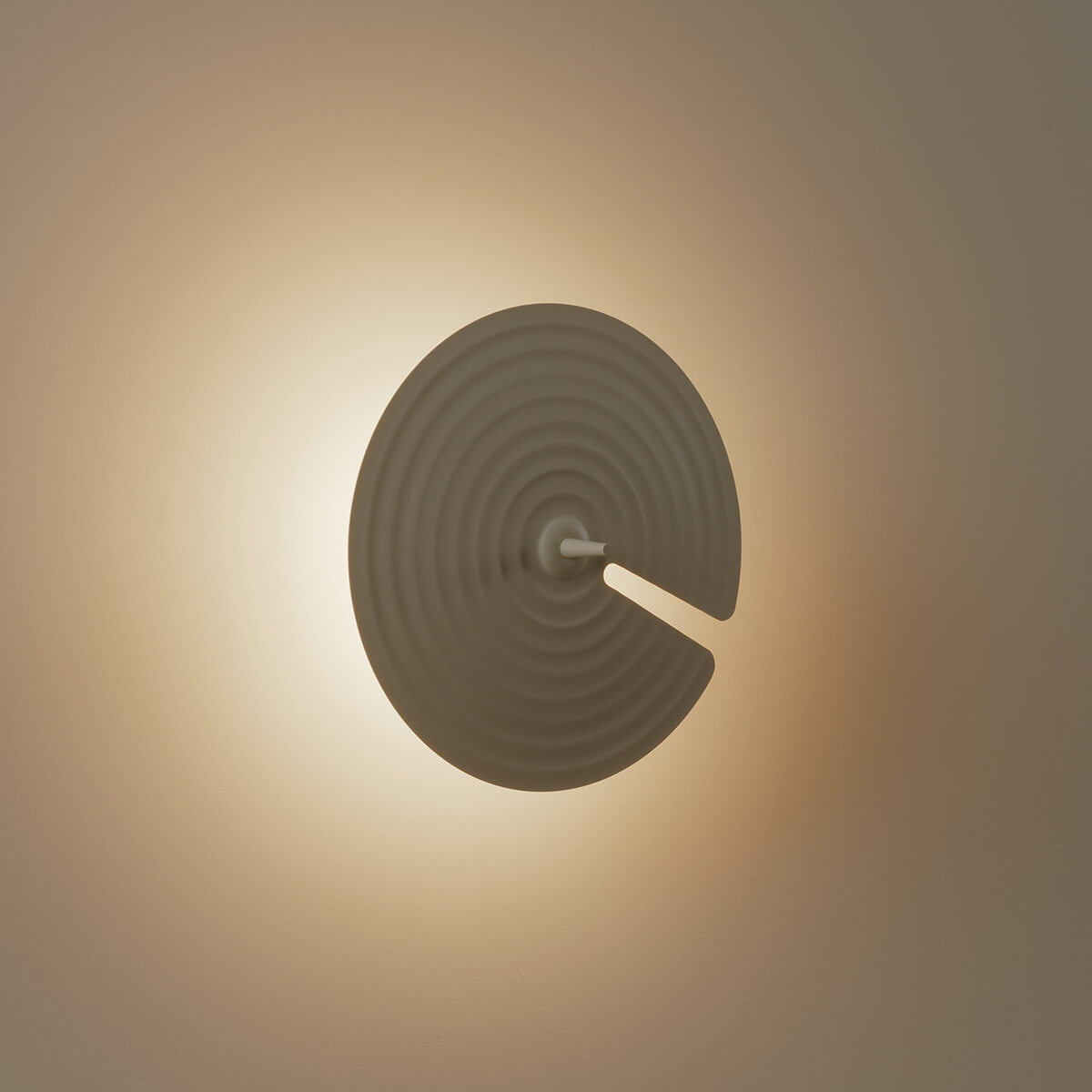 Material/surface: | Shiny opal blown glass with injected polycarbonate, shade made of aluminum, lacquered in color, wall mounting made of lacquered steel |