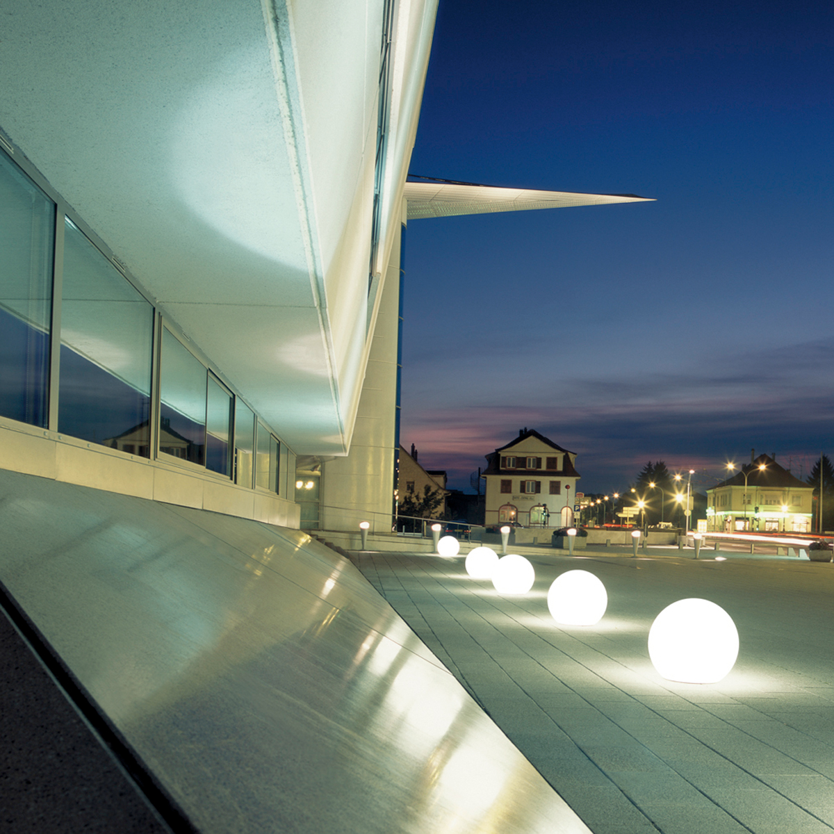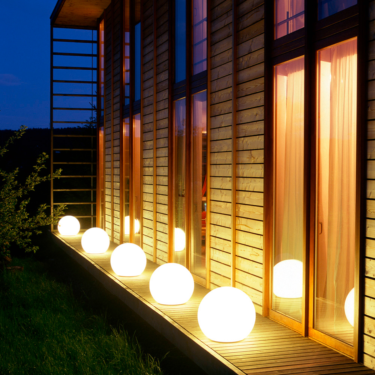 Die Moonlight Vollkugel MAG Bodenlampe eignet sich zur Bestückung mit LED-Retrofits. Passende Leuchtmittel für die Varianten mit Ø: 35 cm und Ø: 55 cm sind als Zubehör erhältlich.