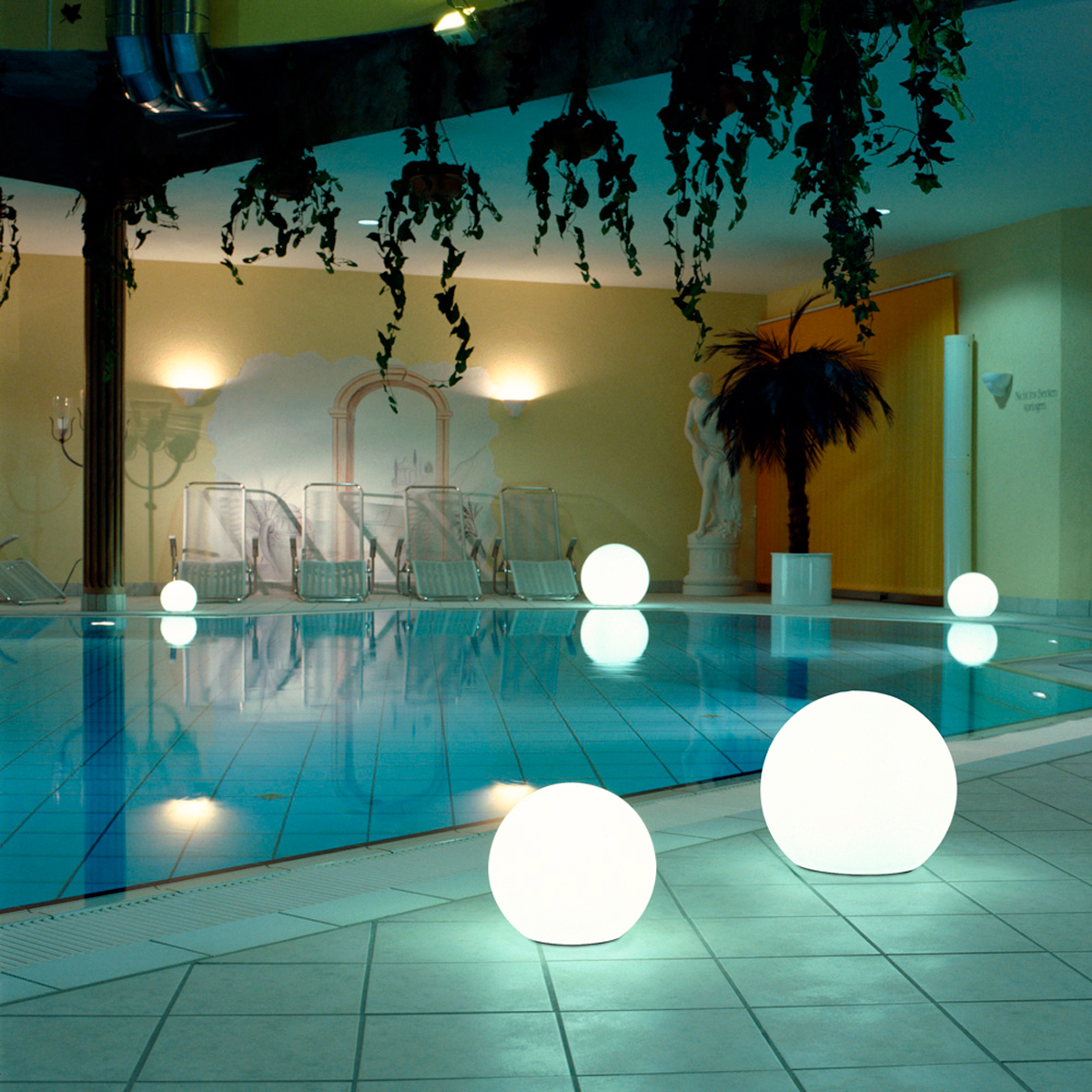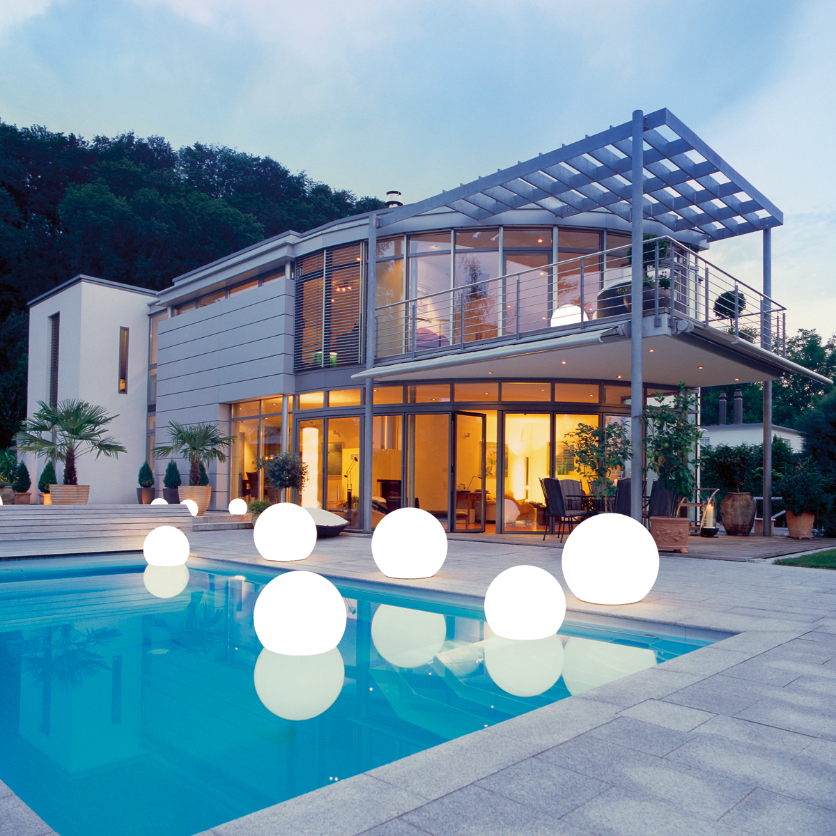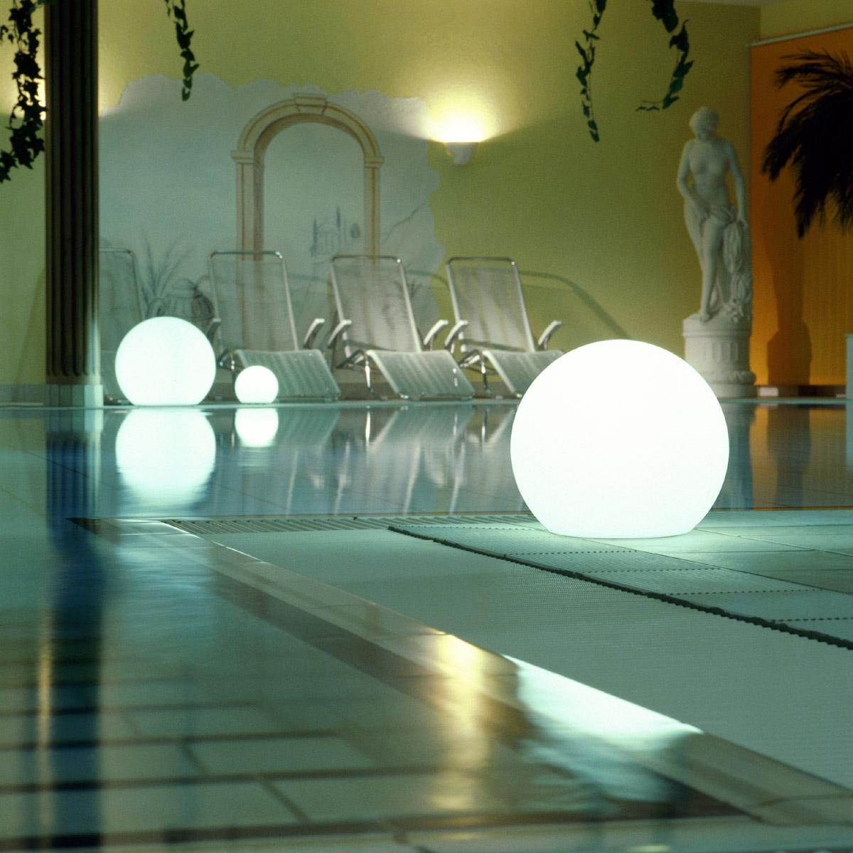 Moonlight Vollkugel MAG mit Aufschraubsockel, Ø: 55 cm und Ø: 75 cm, weiß, sowie Moonlight Vollkugel BMWV Akkuschwimmleuchte, verschiedene Ausführungen