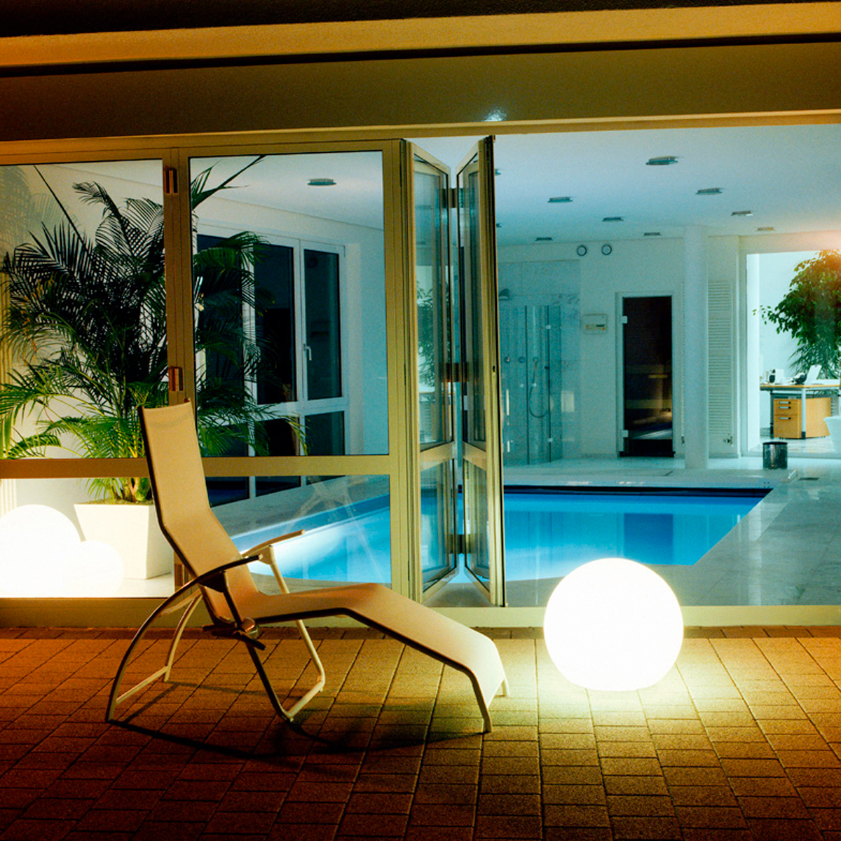 Moonlight Vollkugel MAG mit Aufschraubsockel, Ø: 55 cm, weiß, sowie Moonlight Vollkugel MWV Schwimmleuchte, Ø: 35 cm und Ø: 55 cm, weiß