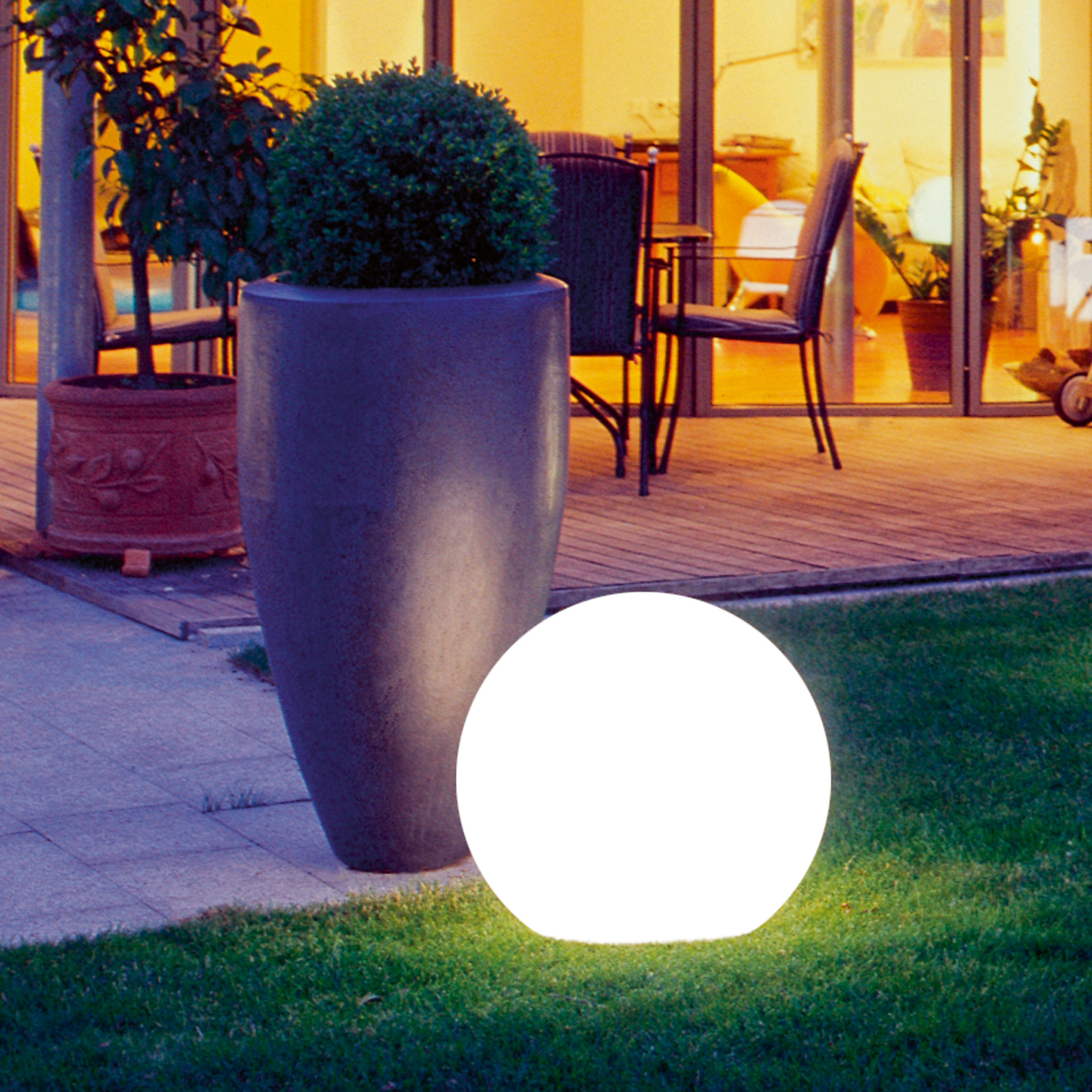 Die Moonlight Vollkugel MBG Bodenleuchte eignet sich zur Bestückung mit LED-Retrofits. Passende Leuchtmittel für die Varianten mit Ø: 35 cm und Ø: 55 cm sind als Zubehör erhältlich.