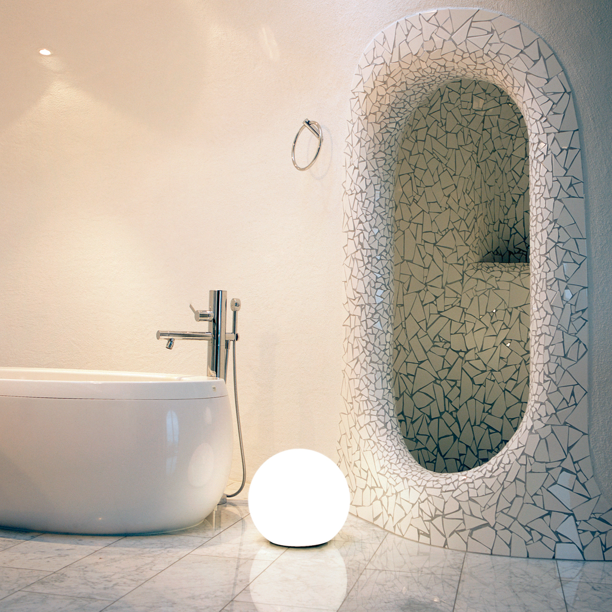 Die Moonlight Vollkugel MFL Bodenleuchte eignet sich zur Bestückung mit LED-Retrofits. Passende Leuchtmittel für die Varianten mit Ø: 35 cm und Ø: 55 cm sind als Zubehör erhältlich.