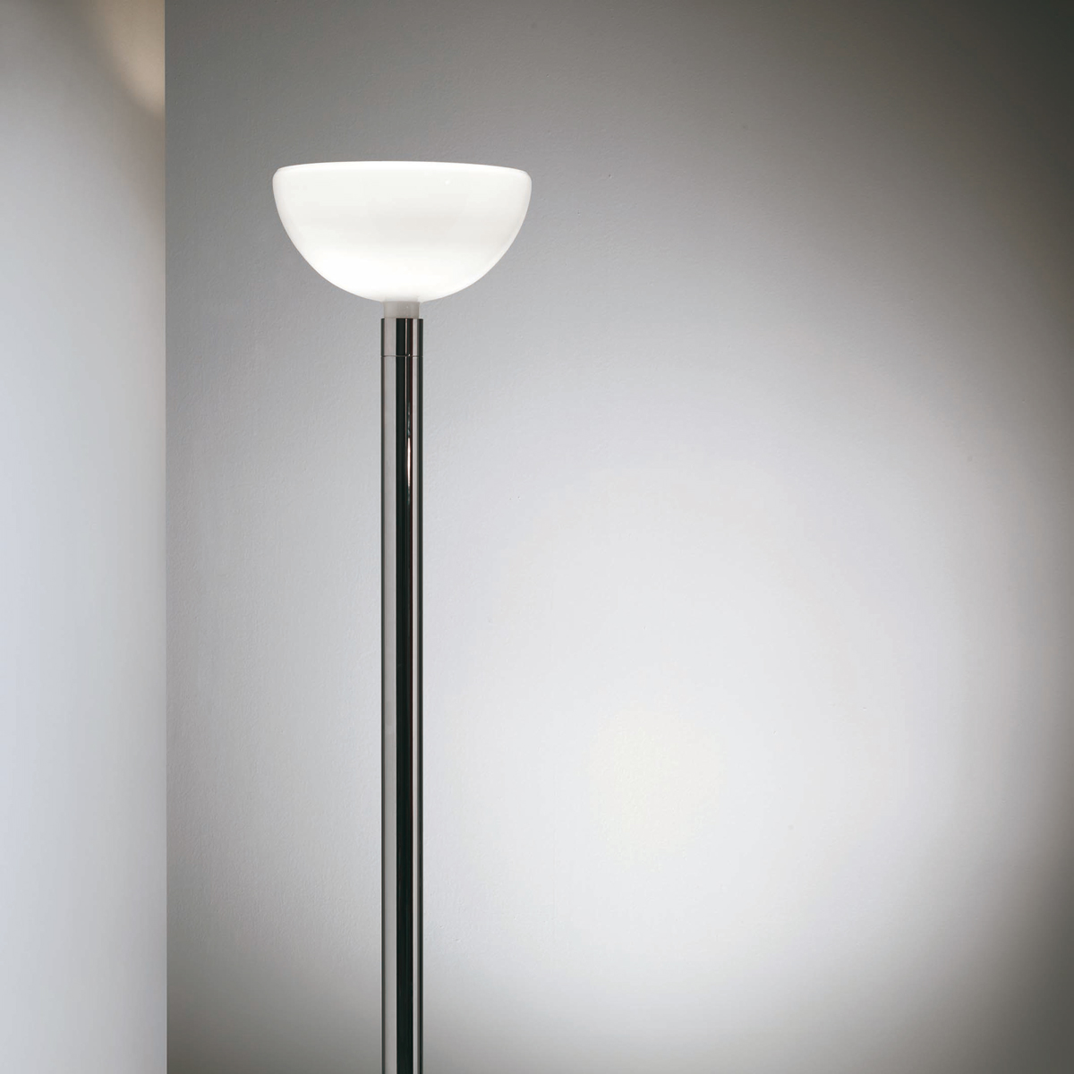 Die Nemo AM2C Terra Stehleuchte repräsentiert ein Gemeinschaftswerk der Designer Franco Albini, Franca Helg, Antonio Piva und Marco Albini und wurde 1969 entworfen. Mit ihrer klaren Formensprache und der glanzvollen Verchromung wirkt die Stehleuchte jedoch alles andere als altmodisch und macht gerade in modernen Einrichtungen eine gute Figur.