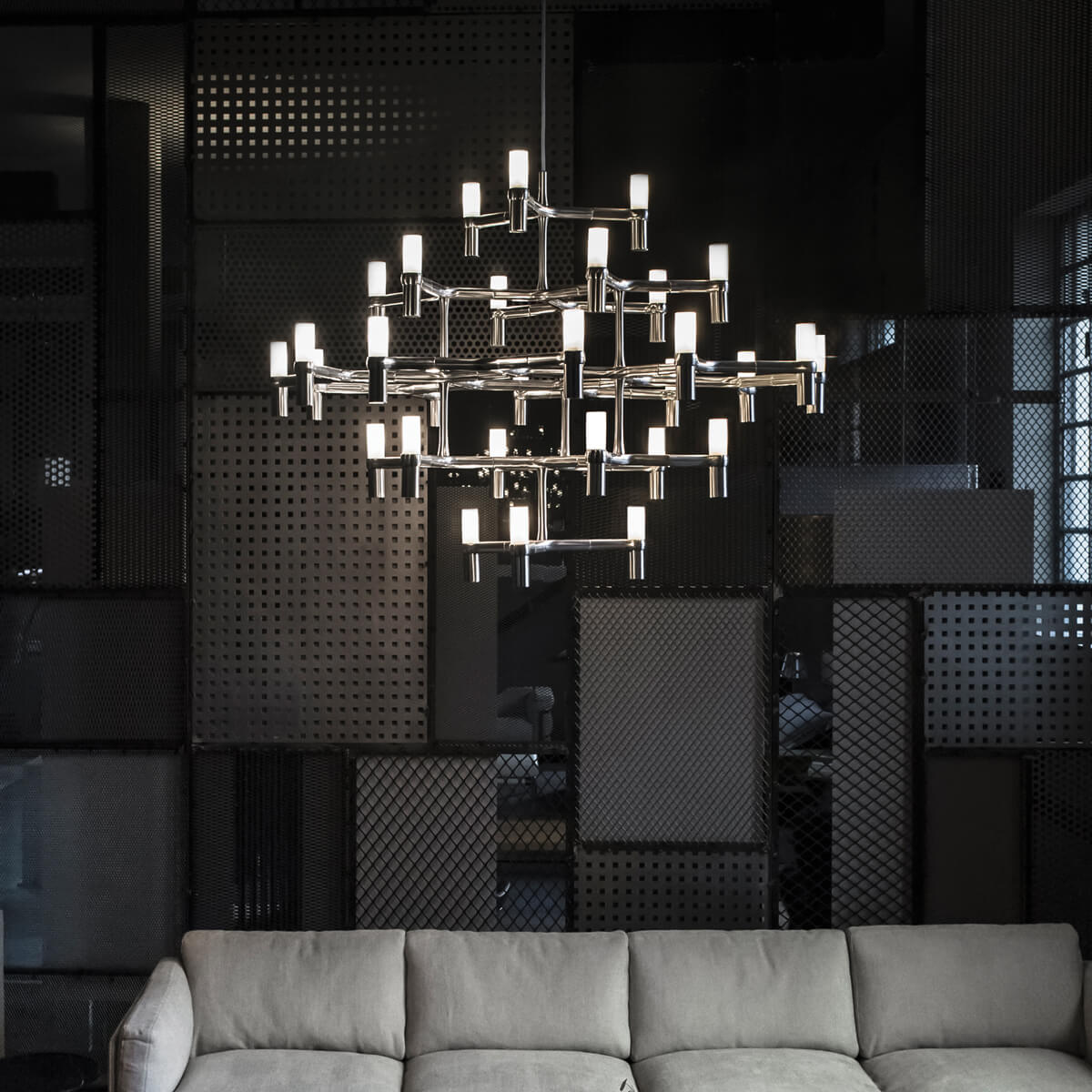 - 30-flammiger Chandelier mit moderner Linienführung