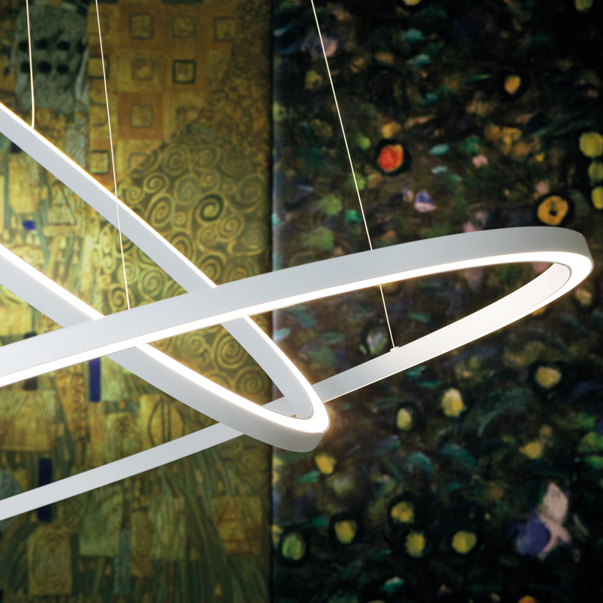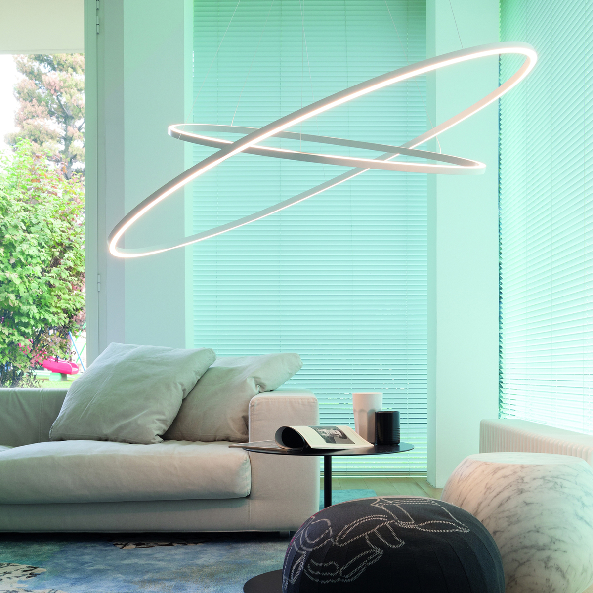 - Pendelleuchte bestehend aus zwei Leuchtenringen (Ellisse Minor uplight und Ellisse Major downlight)