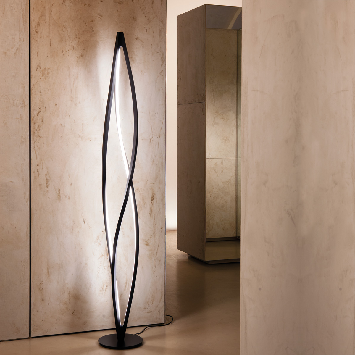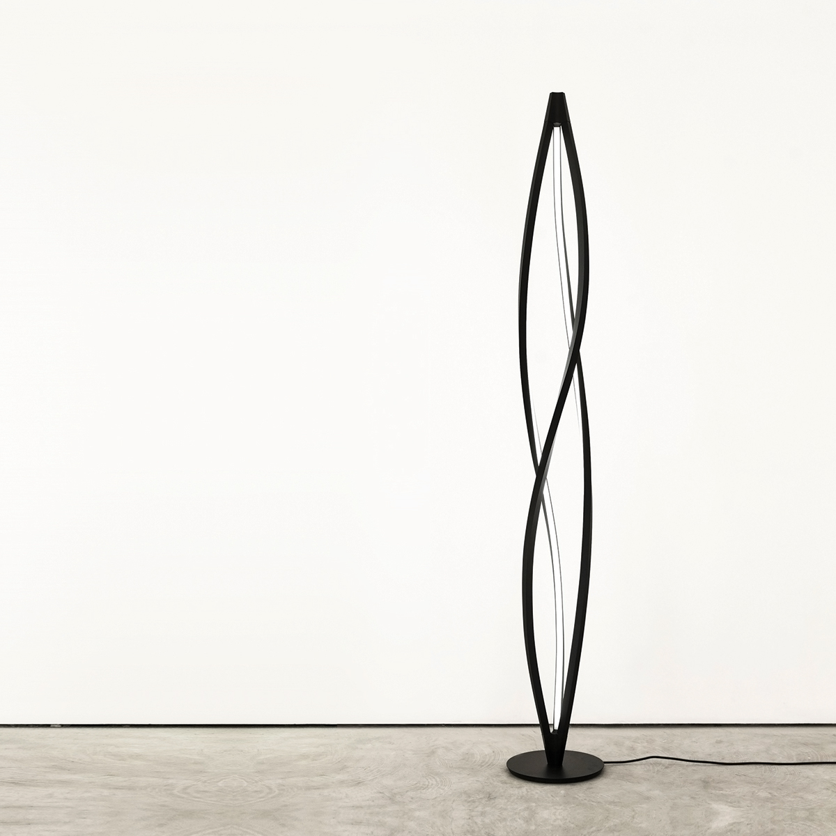- Skulpturale Stehleuchte aus drei elegant gewundenen Lichtstreben
