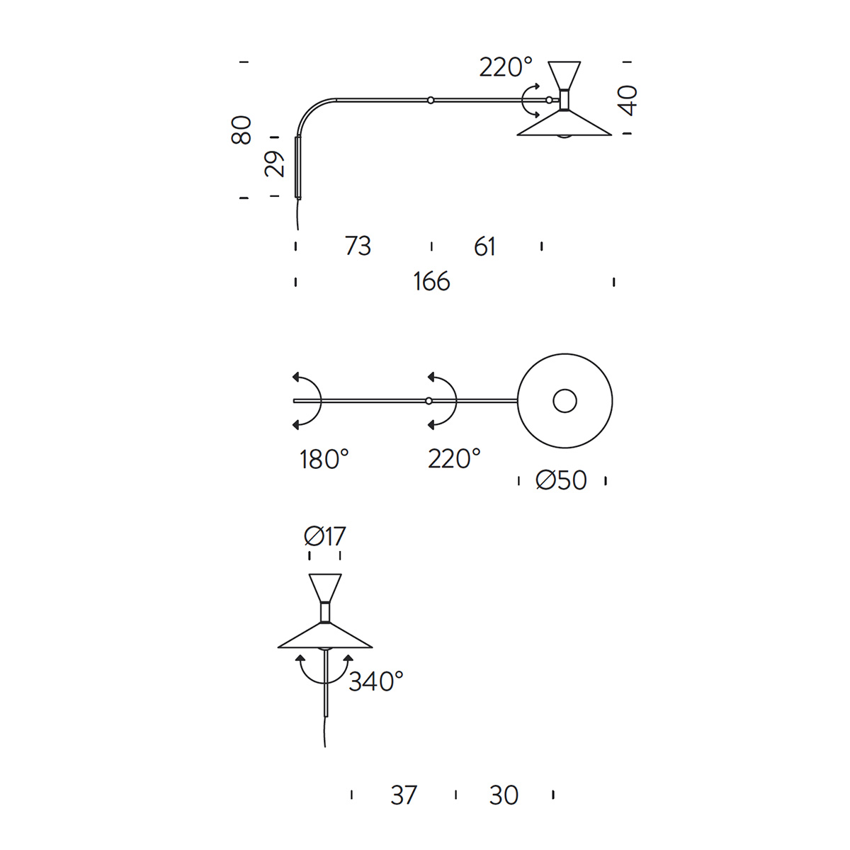 Nicht nur schön, sondern auch höchst funktional: Die Lampe de Marseille Parete von Nemo ist vielseitig ausrichtbar. Der Schirm lässt sich um 340° schwenken und um 220° drehen, der Gelenkarm auf mittlerer Länge drehen und nahe der Wandhalterung um 180° seitwärts verstellen. Ideal für eine flexible Akzentbeleuchtung!