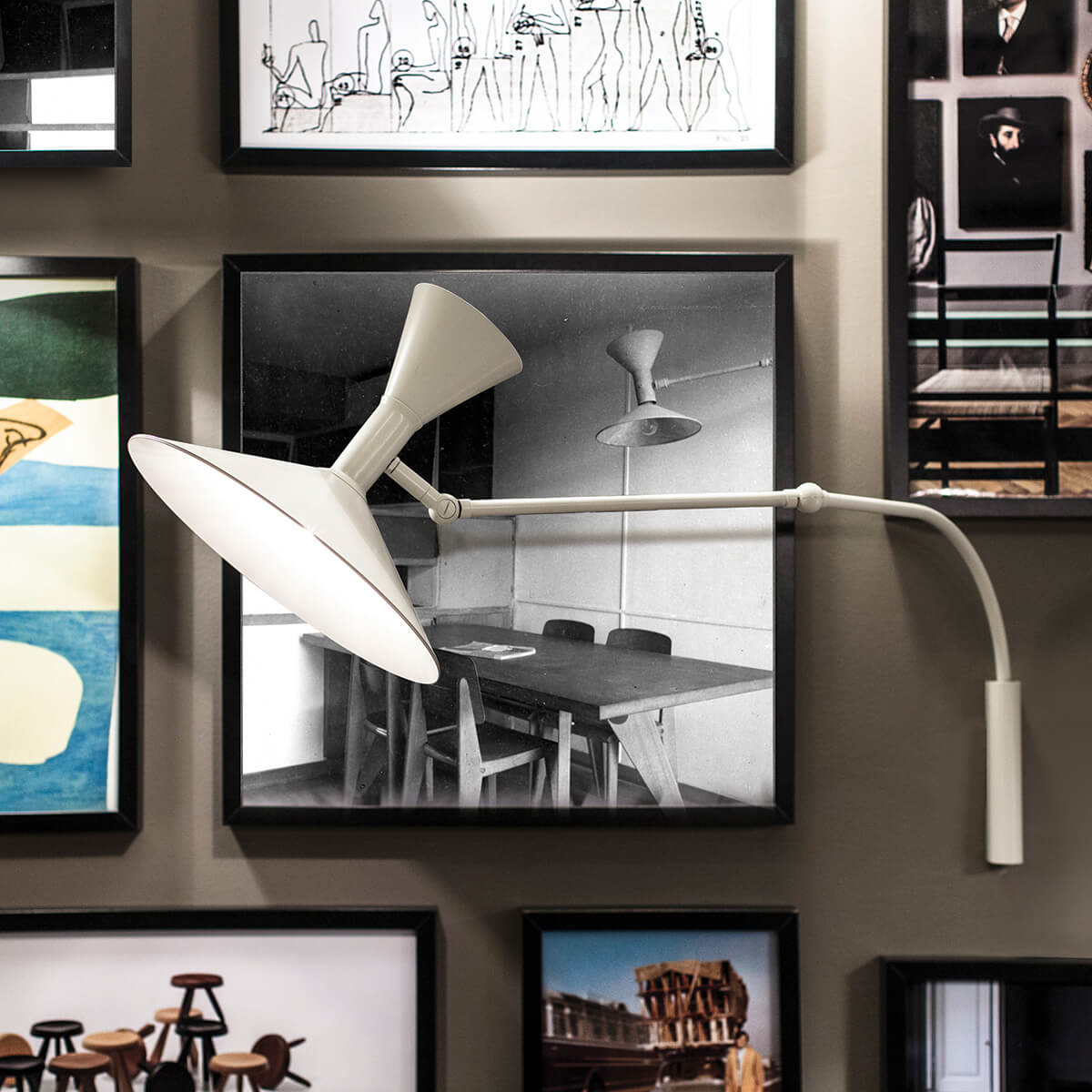 Ein kleiner Bewegungskünstler: Die Mini Lampe de Marseille Parete von Nemo ist beliebig ausrichtbar. Der Leuchtenschirm lässt sich um 340° schwenken und um 220° drehen, der Gelenkarm auf mittlerer Länge drehen und nahe der Wandhalterung um 180° seitwärts verstellen. Perfekt für eine flexible Akzentbeleuchtung!