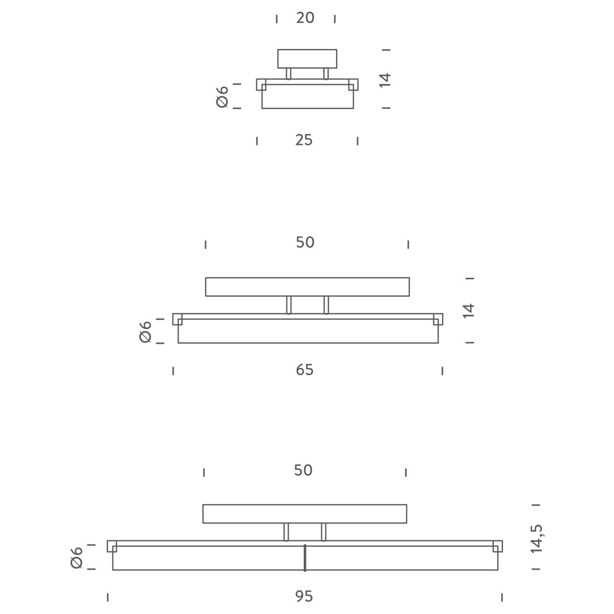 - Ausführungen Breite: 65 cm und 95 cm extern dimmbar via DALI/push
