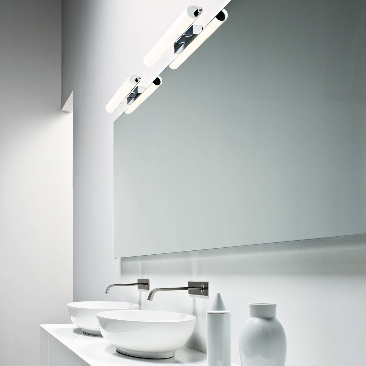 Von zurückhaltender, moderner Ästhetik ist die Nemo Norma Parete LED. Der röhrenförmige Leuchtenschirm besteht aus opalweißem Polycarbonat und sorgt für eine blendfreie und diffus gestreute Lichtverteilung. Als Wandhalterung dient der Norma Parete LED eine quaderförmige Struktur aus poliertem Aluminium. Mit ihrem modern-schlichten Design lässt sich die Wandleuchte verschiedensten Räumlichkeiten einfügen: Im Flur oder Badezimmer gewährleistet sie eine angenehme Allgemeinbeleuchtung. Drei unterschiedliche Längen machen es möglich, die für die eigenen Räumlichkeiten passende Wandleuchte zu finden. Ausgestattet ist die Nemo Norma Parete LED mit energieeffizienten LED-Leuchtmitteln mit warm-weißer Lichtfarbe. In den Ausführungen mit einer Breite von 65 cm und 95 cm sind die LED-Platinen dimmbar (Dimmer exklusive).