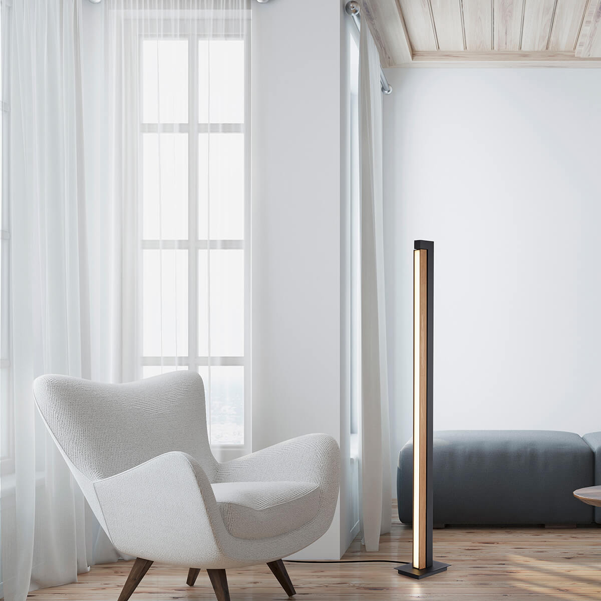 Die PURE Lines Floor LED Stehleuchte von Paul Neuhaus ist perfekt für alle, die modernes Design in den eigenen vier Wänden haben wollen. Diese Stehleuchte ist super geradlinig und hat einen drehbaren Lichtbalken aus Aluminium oder wahlweise aus Holz. Die Stehlampe PURE-Floor bietet eine stufenlose CCT-Lichtsteuerung von warmweiß (2.700 K) bis tageslichtweiß (5.000 K) und lässt sich über die mitgelieferte Funk-Fernbedienung stufenlos dimmen.