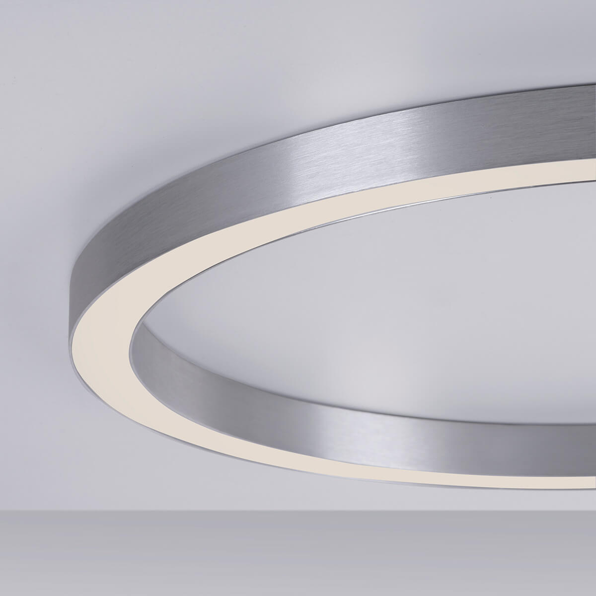 Erleben Sie schlichte Eleganz mit der Lines Round LED Deckenleuchte von Paul Neuhaus PURE. Die ringförmige Leuchte besticht durch minimalen Materialeinsatz und eine ästhetische Optik ohne störenden Deckenkasten. Mit einem Durchmesser von 50 oder 70 cm und gebürstetem Aluminium oder ein elegantes schwarz fügt sie sich perfekt in jedes moderne Interieur ein.