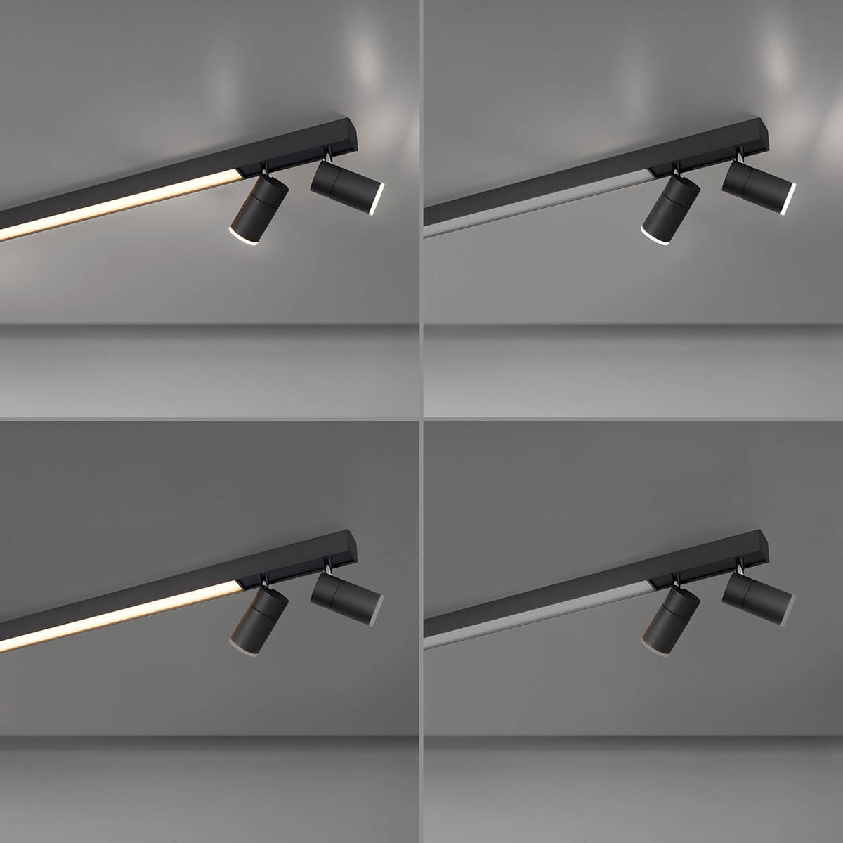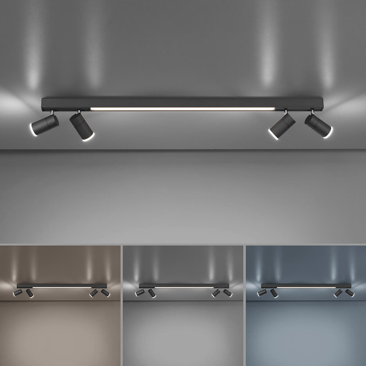 - Lineare Deckenleuchte mit vier Spots für nahezu alle Wohnbereiche