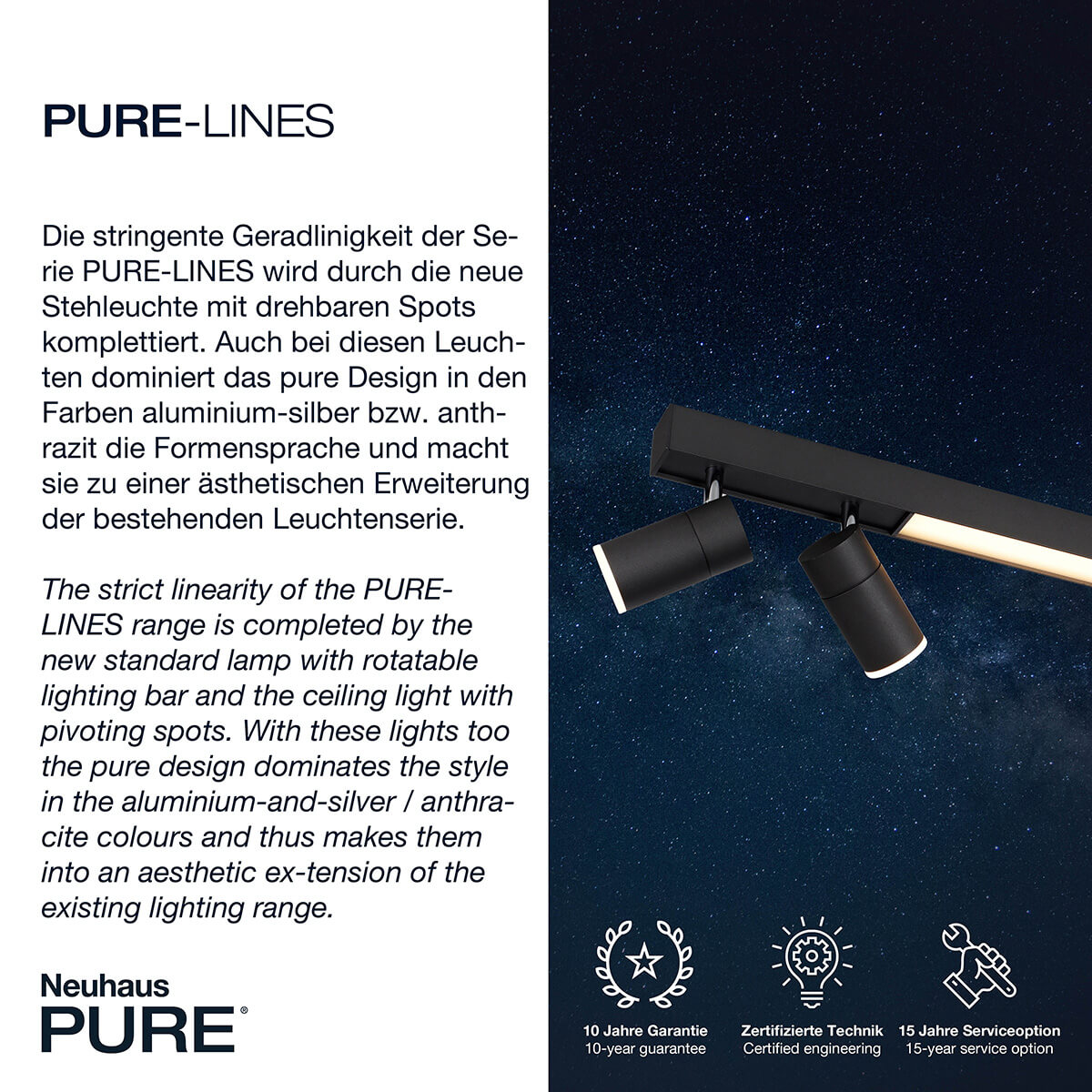 Die PURE Kollektion by Paul Neuhaus steht für Qualität und Beständigkeit, unterstützt durch eine exklusive 10 Jahre Neuhaus PURE Garantie. Bringen Sie modernes Design und Funktionalität in Ihr Zuhause mit dem PURE Lines Spot LED Deckenstrahler.