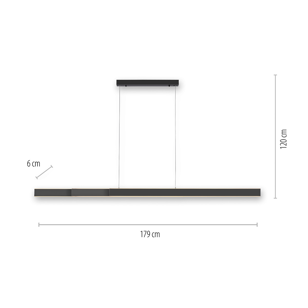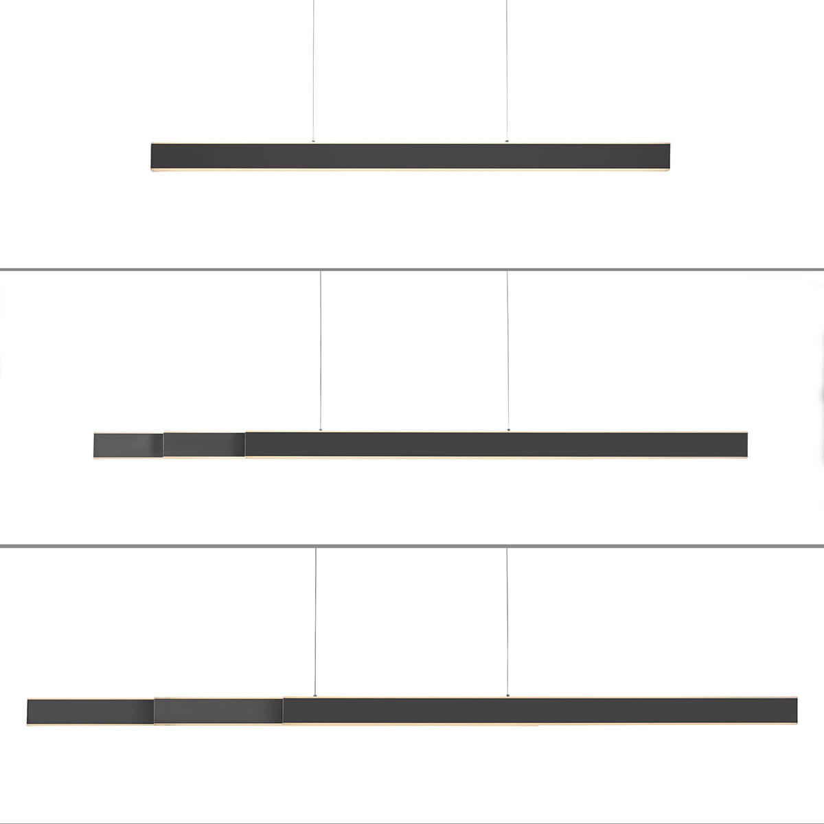 Die Pendellampe bietet eine beeindruckende Anpassungsfähigkeit: Sie ist nicht nur höhenverstellbar, sondern auch in ihrer Länge veränderbar. Der schlanke Leuchtenbalken lässt sich zu beiden Seiten von 120 cm auf bis zu 179 cm ausziehen. Diese Variabilität ermöglicht es, die PURE-Lume optimal an die jeweilige Größe und Höhe Ihres Tisches oder Raumes anzupassen – perfekt vor allem zur Beleuchtung ausziehbarer Tischflächen.