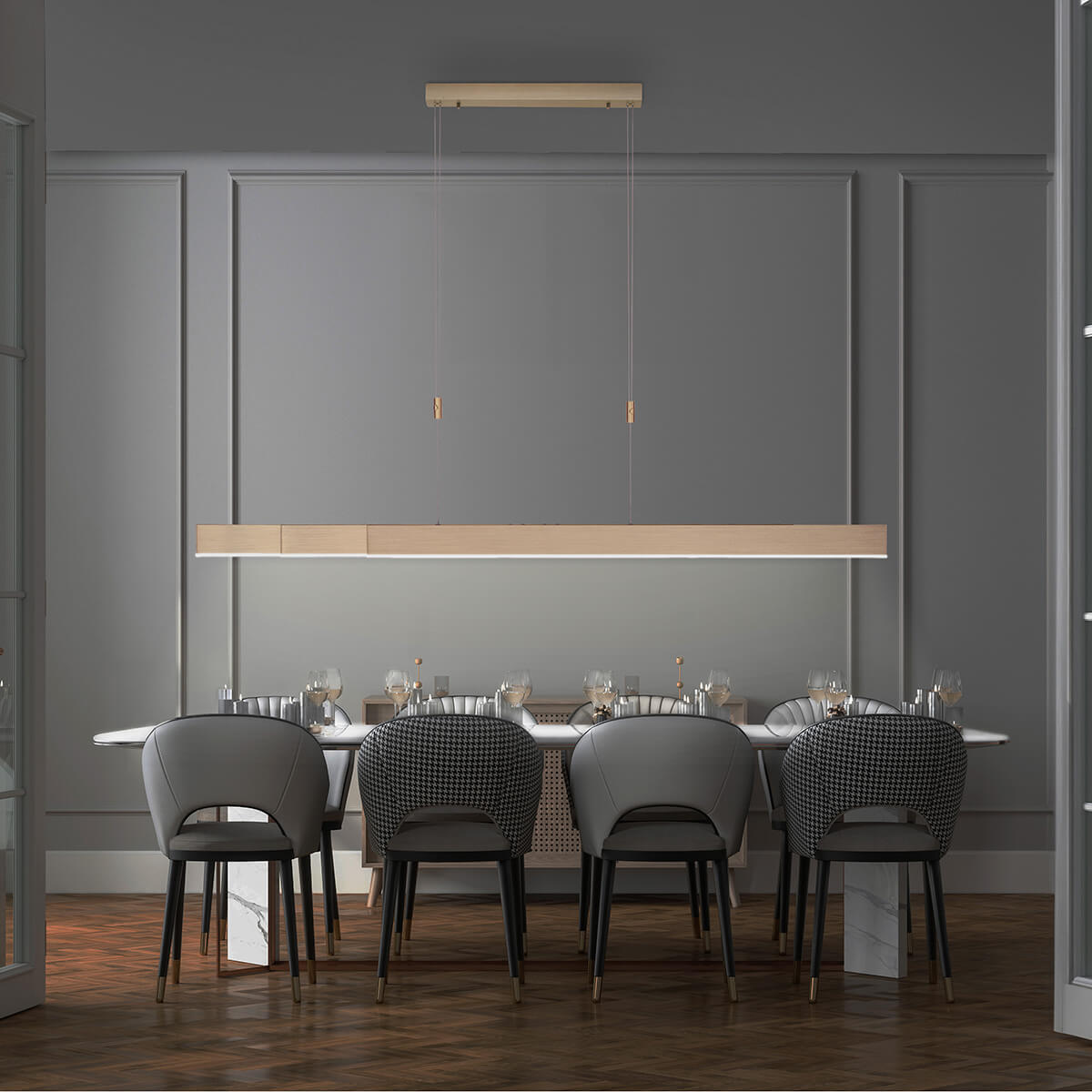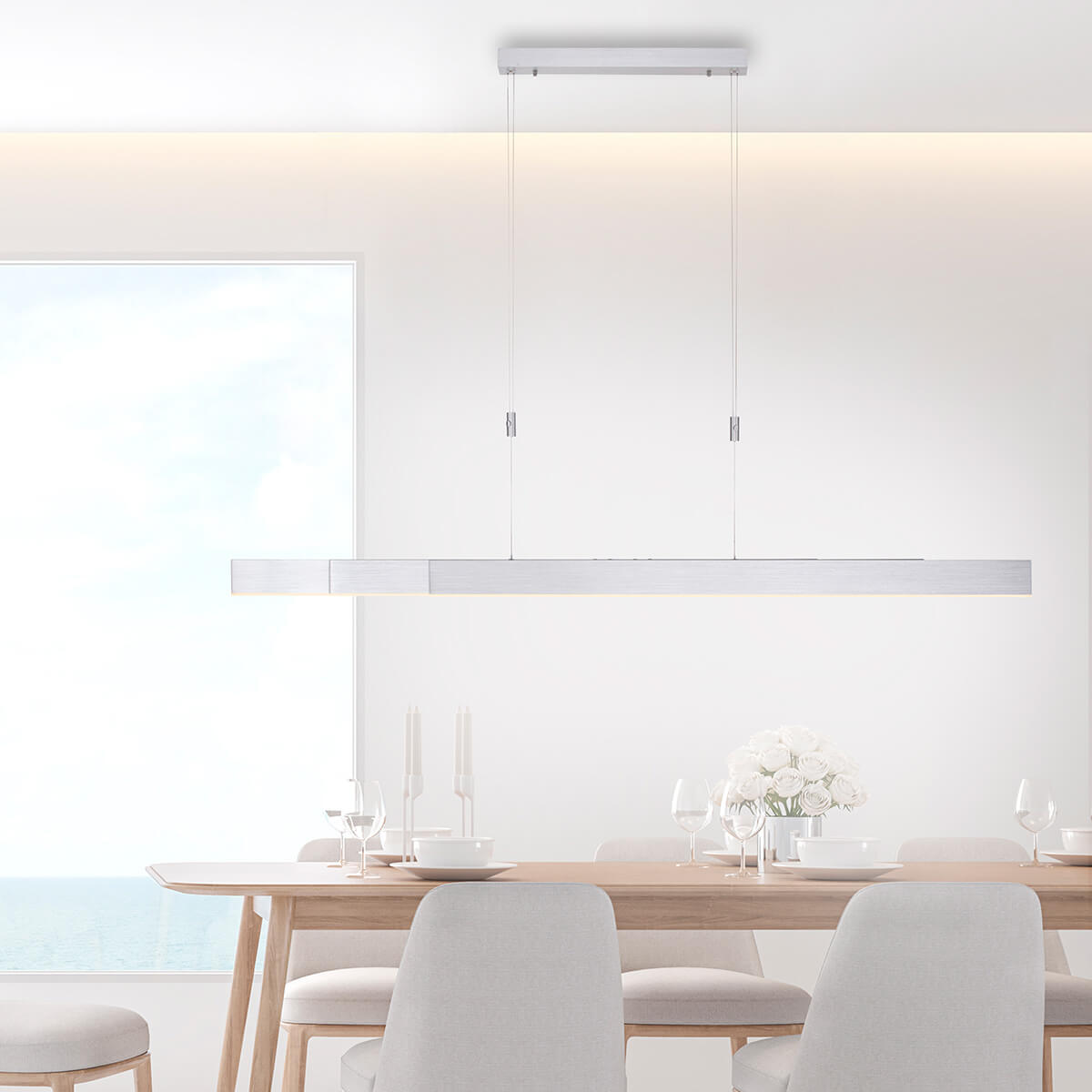 - Balkenförmige Pendelleuchte, die ideale Wahl für längliche und ausziehbare Esstische