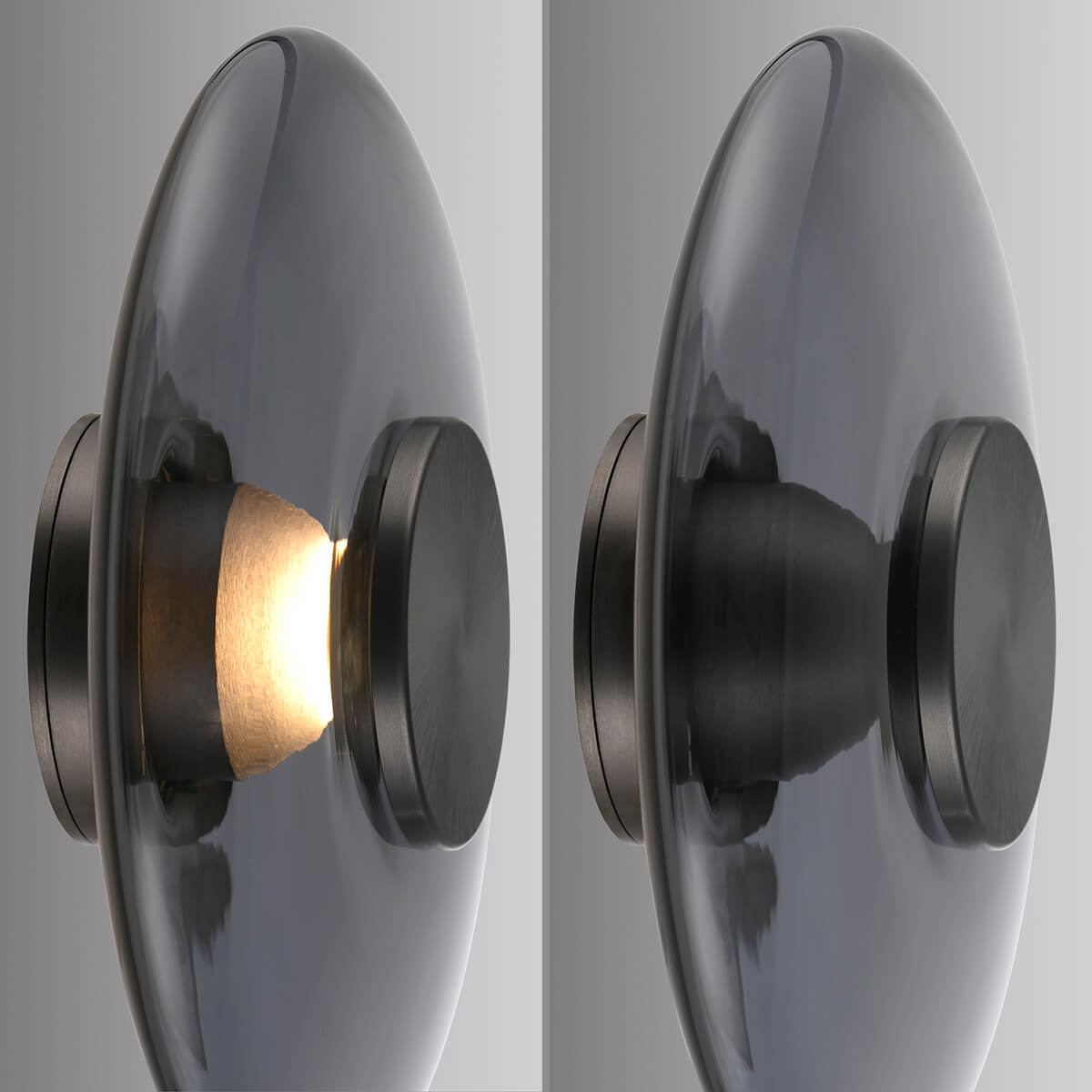 - Die Dunkelbraun eloxierte Variante hat einen weißen Opalglasschirm und die Grau eloxierte Variante hat ein Rauchglas als Schirm