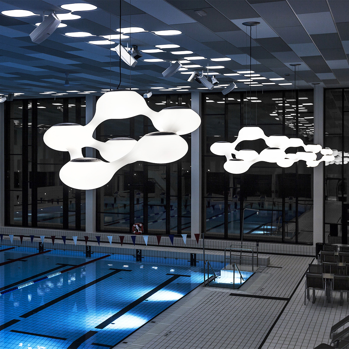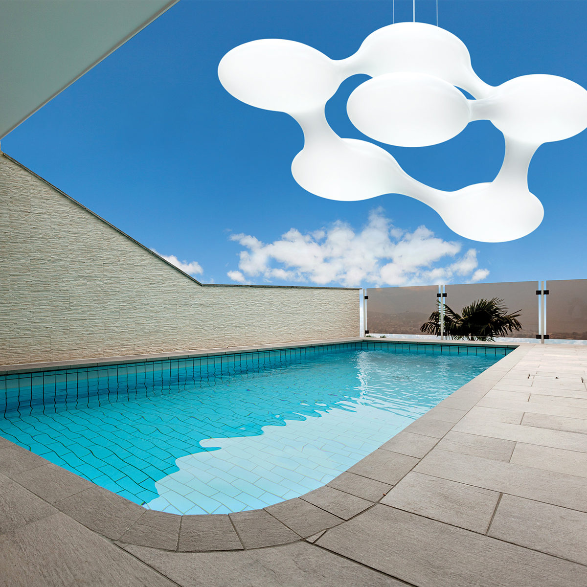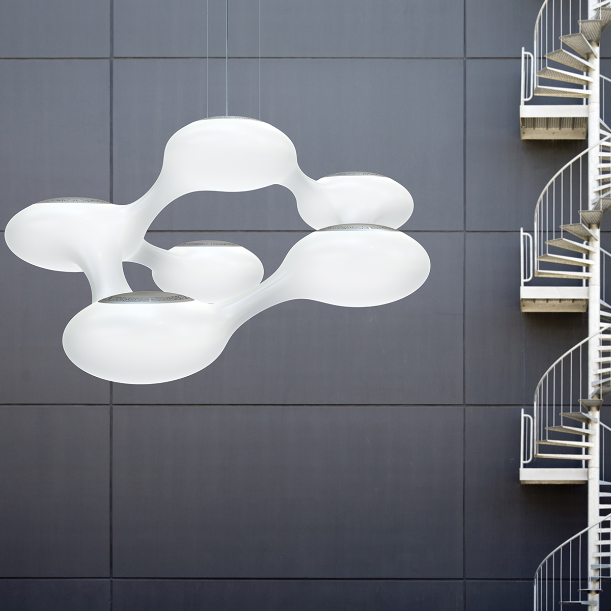 - Raumgreifende Pendellampe in organisch geschwungenem Design