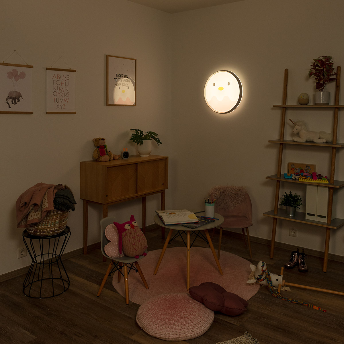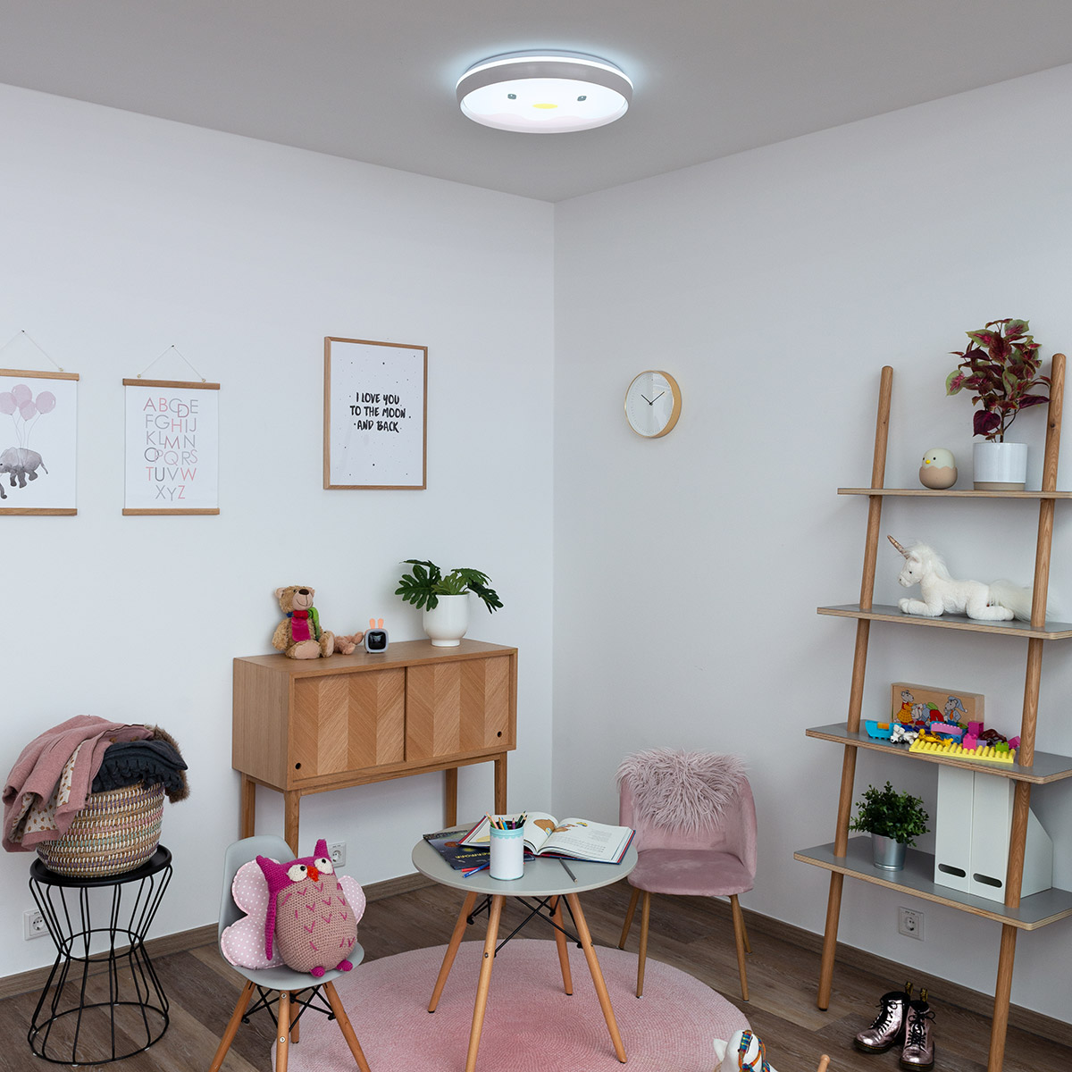 Die Wand- und Deckenleuchte verfügt über einen superpraktischen Nachtlicht-Modus, bei dem das warmweiße Licht auf 50 % reduziert und nach 30 Minuten langsam heruntergedimmt wird. Auf diese Weise wird ein wunderbares Einschlafambiente für die Kleinsten geschaffen. Ein weiterer Vorteil: Als Elternteil muss man nicht mehr daran denken, das Licht auszuschalten, wenn die Kinder eingeschlafen sind.