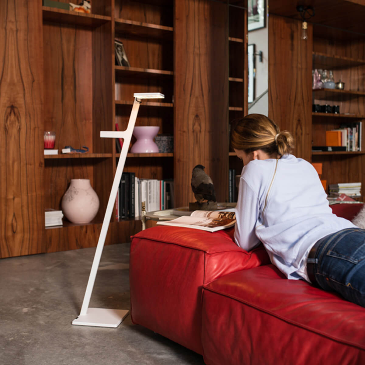Besonderen Bedienkomfort erhält die Roxxane Leggera 101 CL durch die integrierte Gestensteuerung. Diese erlaubt es, die Leseleuchte über einen Sensor im Kopf berührungslos zu schalten und dimmen. Als besonderes Feature ist die Akku-Lampe zudem mit einem Powerbank Port ausgestattet, über den sich externe Geräte wie Smartphones und Tablets aufladen lassen. Auf diese Weise ist die Leuchte portable Lichtquelle und Stromtankstelle zugleich – und damit multifunktionales Designobjekt.
