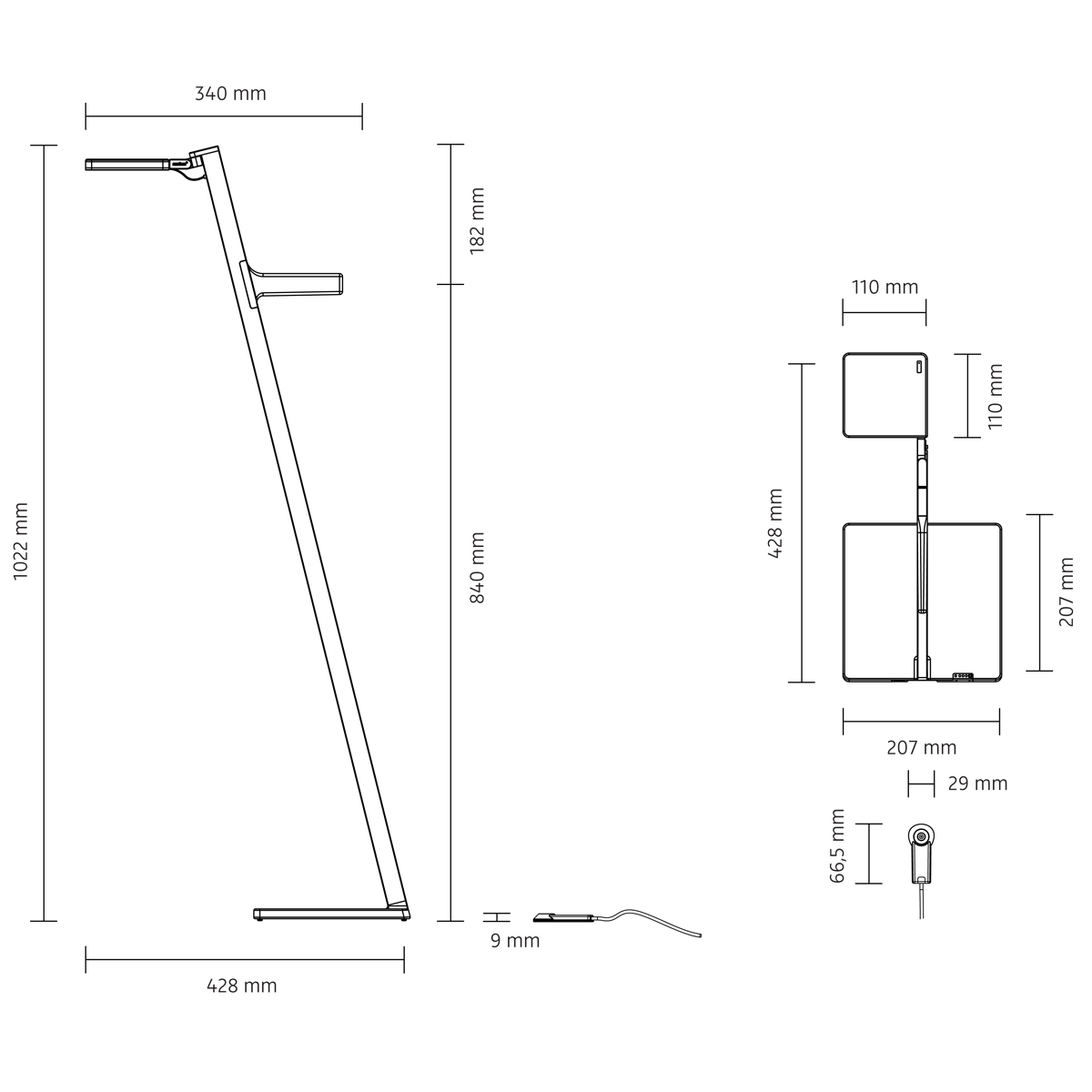 Über ein verstellbares 270°-3D-Kopfgelenk aus Zinkdruckguss ist der flache LED-Kopf der Nimbus Roxxane Leggera 101 CL mit dem Fuß verknüpft. Der Diffusor besteht aus Polycarbonat und begünstigt eine blendfreie und zu 100 % direkte Lichtabgabe. Beste Lichtqualität garantieren die warmweiße Lichtfarbe und die exzellente Farbwiedergabe (Ra>90).