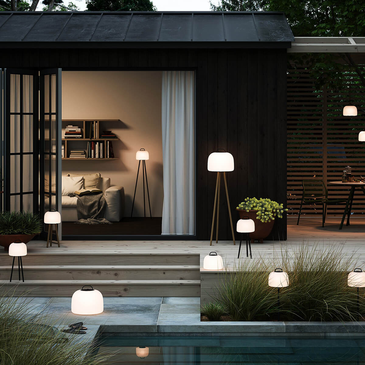 Erleben Sie mit der Kettle To-Go 36 von Nordlux eine neue Ebene der Beleuchtung, die Design, Mobilität und Vielseitigkeit in einer einzigen Lichtquelle vereint. Die zeitlos schöne Akkulampe kann dank ihres praktischen Griffs, der dezenten Füßchen und der mitgelieferten Aufhängung als Tischlampe verwendet, auf den Boden gestellt oder an Zweige gehängt werden – und dies sowohl im Innen- als auch Außenbereich.