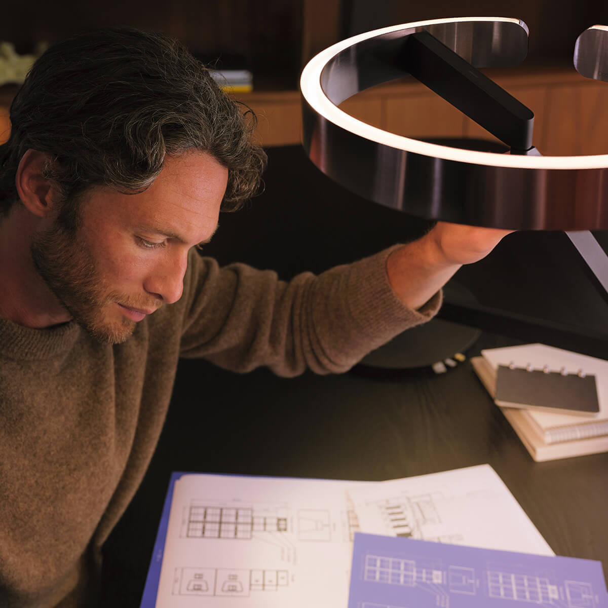 Dank innovativer "focus light"-Funktion können Sie das Direktlicht per "touchless control" oder über die kostenlose Occhio air App intensivieren und punktuell ausrichten – ideal für konzentriertes Arbeiten oder entspanntes Lesen. Durch die Höhenverstellung der Tischlampe ergibt sich zudem ein mechanischer Zoomeffekt, der es Ihnen erlaubt, den Lichtkegel spielerisch zu variieren und so ein individuelles Lichterlebnis zu schaffen.