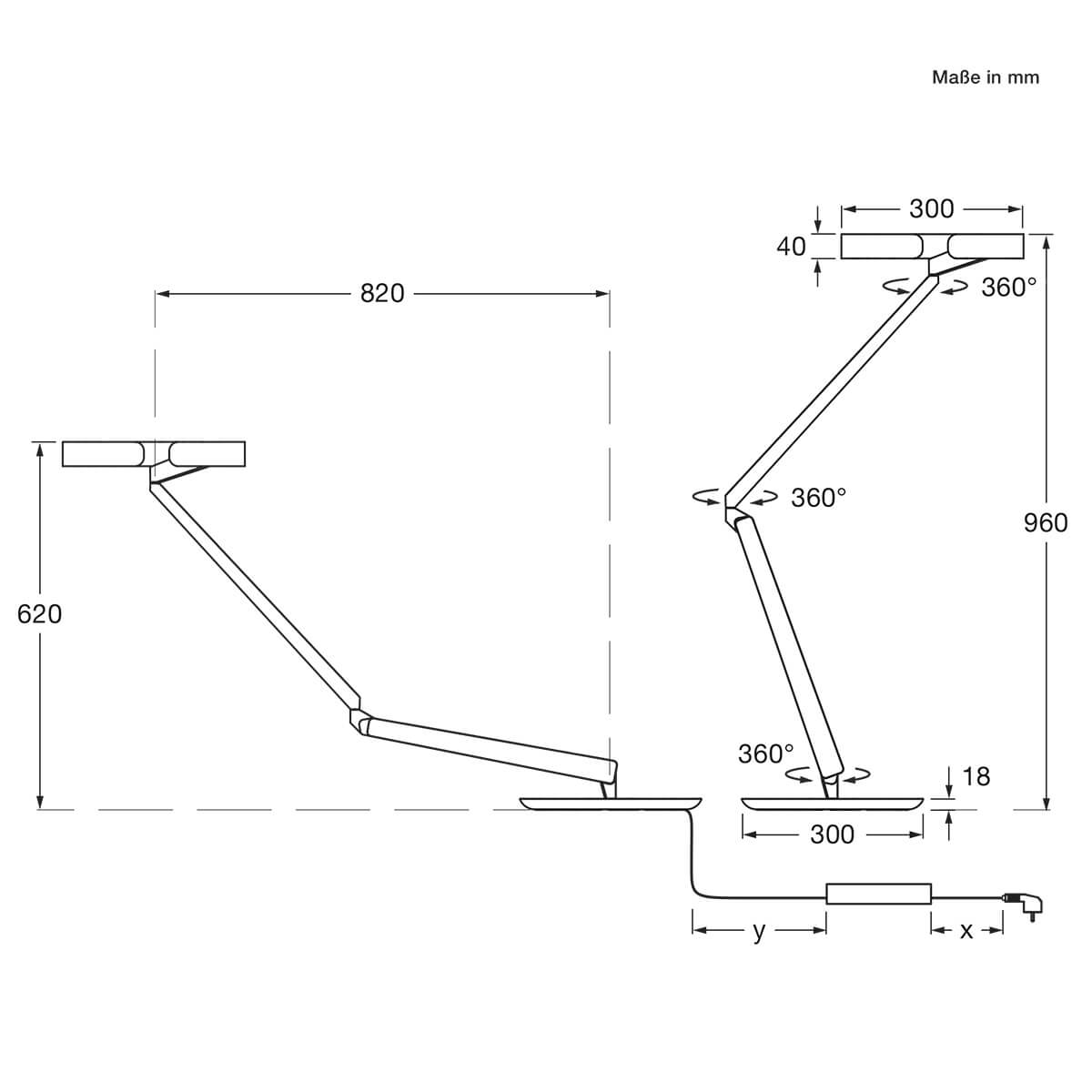 - Um 360° ohne Anschlag drehbare und höhenverstellbare Arme