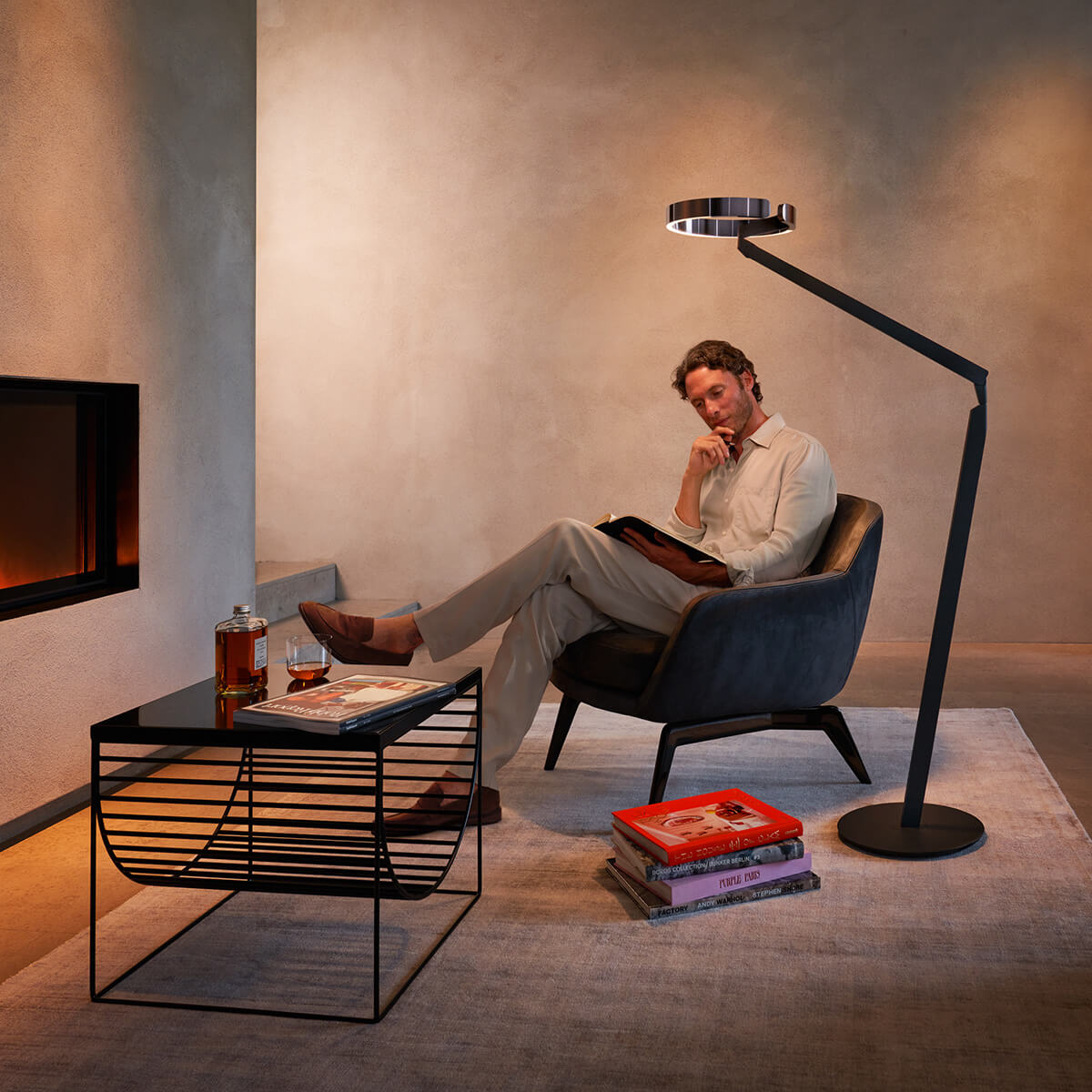 Gioia lettura ist die ideale Leseleuchte neben Sessel und Couch in Wohnzimmer, Lobby und Lounge. Die schicke Stehleuchte, ein Meisterwerk der Münchner Designschmiede Occhio, besticht durch ihre edle Ästhetik und eine Lichtqualität auf höchstem Niveau. Technische Raffinessen wie berührungslose Gestensteuerung, Occhio "color tune" und "focus light" machen die Leuchte zu einem ausgeklügelten Lichtwerkzeug, das ein jedes Ambiente luxuriös aufwertet.