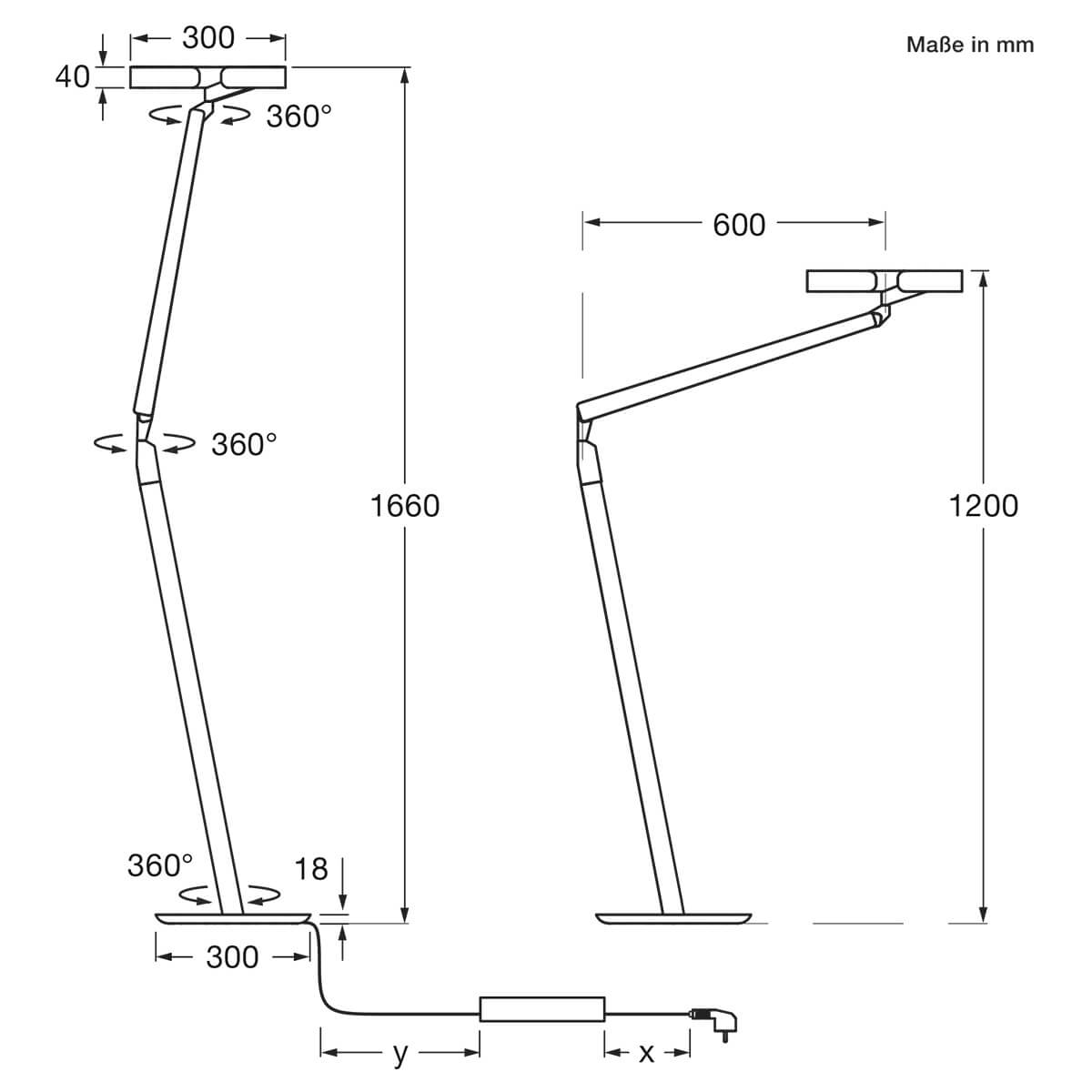 - Um 360° frei drehbare und höhenverstellbare Arme