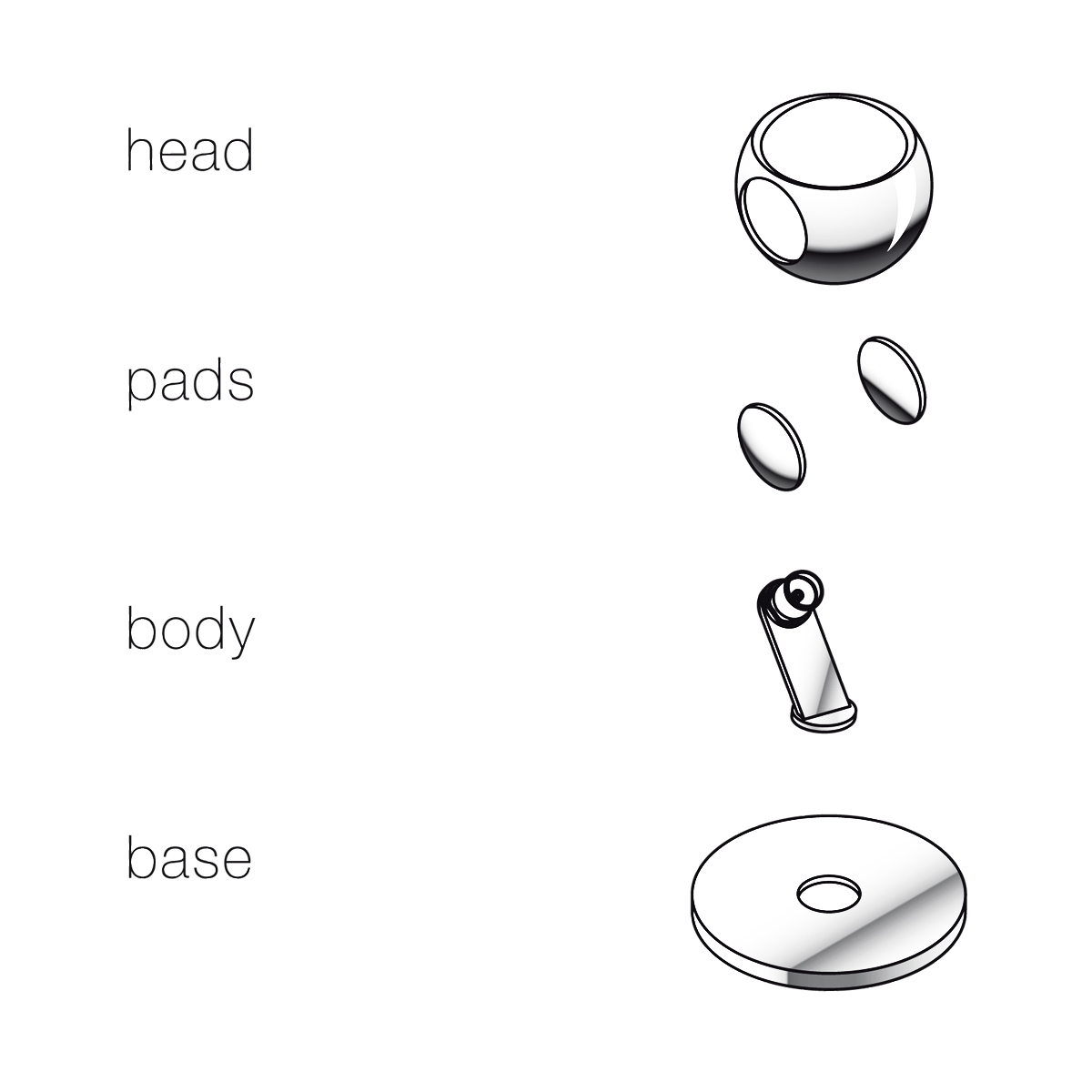 Create your style! Die Occhio io 3d basso C LED ist in unzähligen Farbkombinationen erhältlich und somit auf den individuellen Geschmack und die jeweiligen räumlichen Anforderungen abstimmbar. Der Leuchtenkopf ist in neun verschiedenen Oberflächen zu erwerben (Chrom, Chrom matt, weiß glänzend, weiß matt, schwarz glänzend, schwarz matt, golden matt, Roségold und Bronze) und mit einer Basis sowie pads in dazu passender Tönung kombinierbar. Der kurze Winkelarm ist den Farben Chrom, Chrom matt, weiß matt sowie schwarz matt verfügbar.